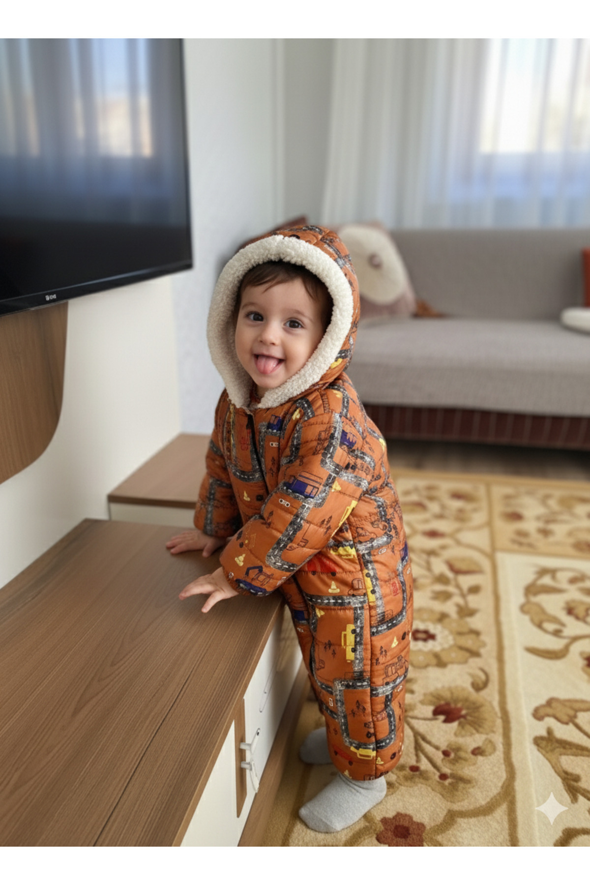 Yeni Sevimli Araba ne Trafik Figürlü Fermuarlı Kapüşonlu ERKEK Welsoft Kozmonot Tulum
