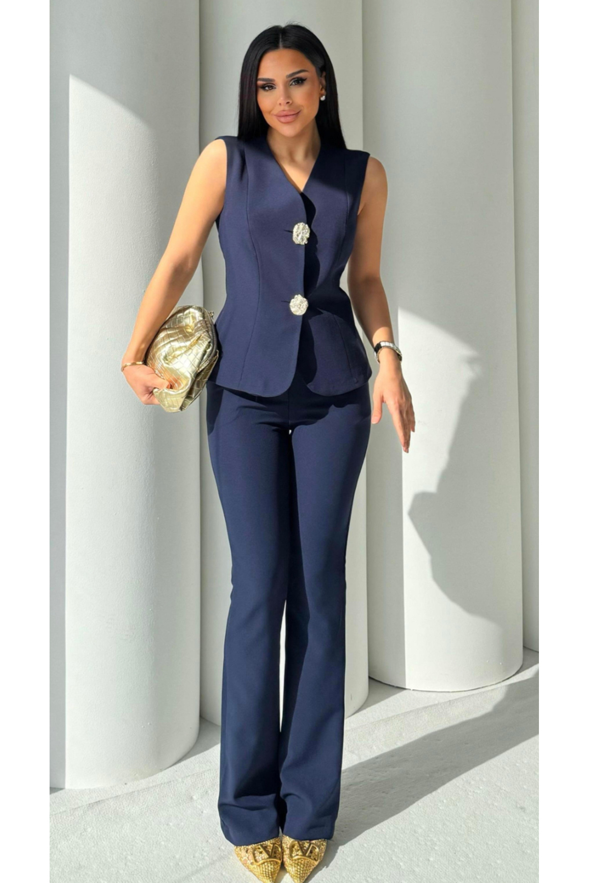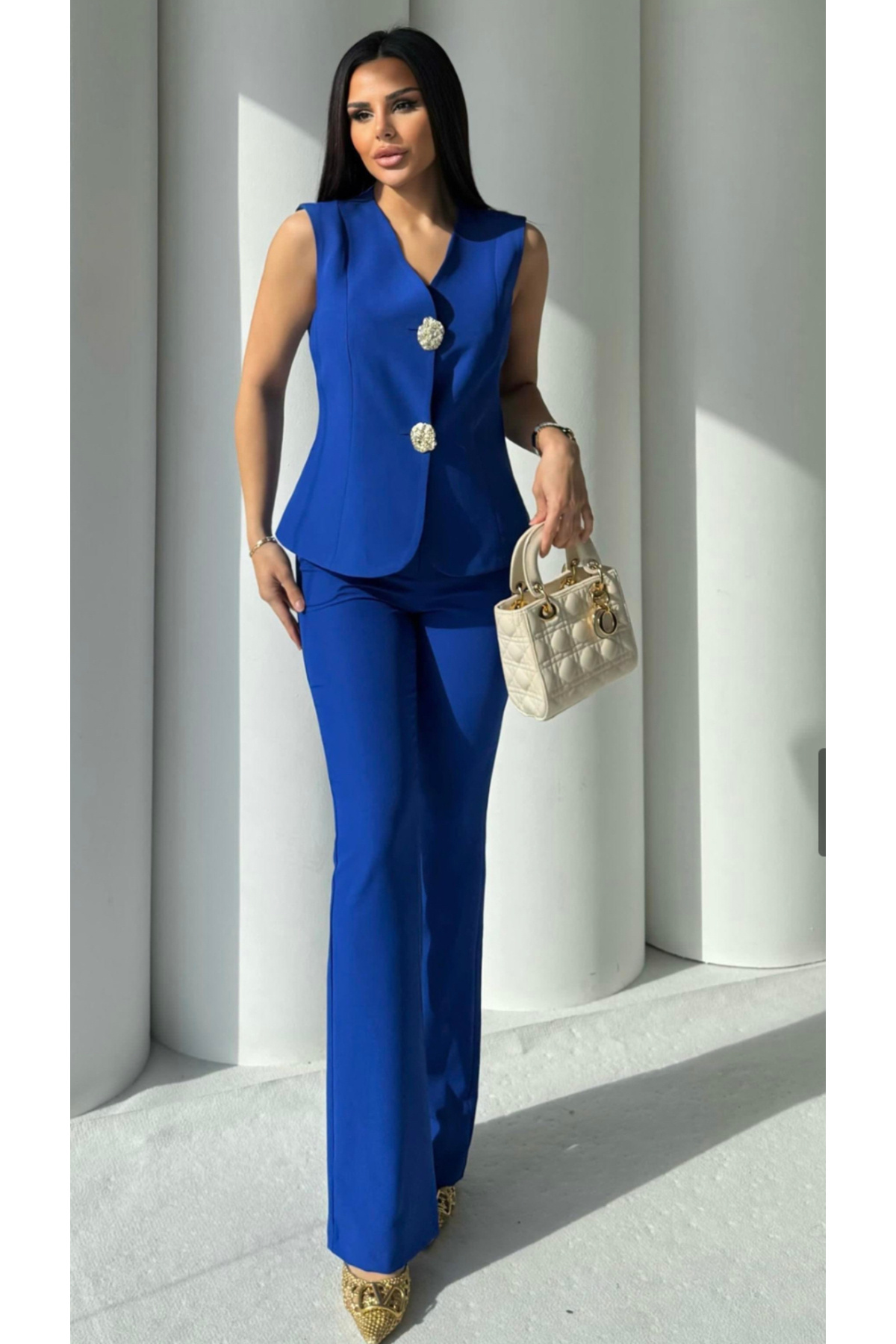 - İspanyol paça pantolon tasarımı modern ve dinamik bir görünüm kazandırırken, kolsuz üst parça ile yaz ayları için serinlik hissi verir.