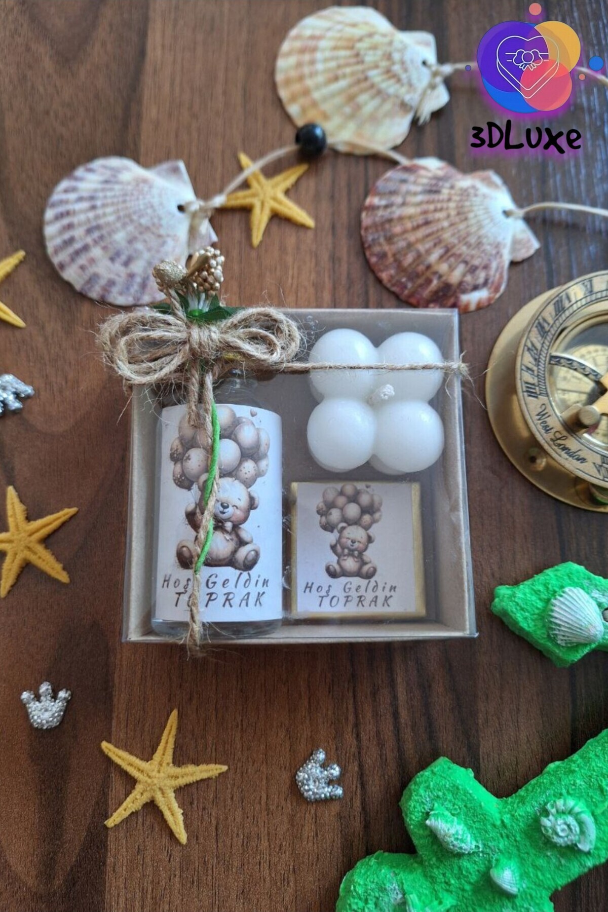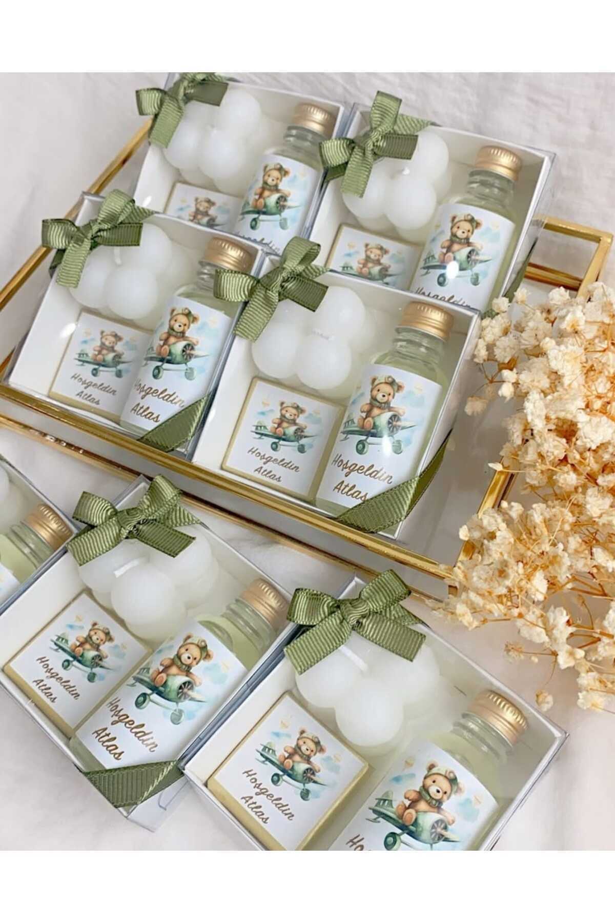 - Bebek, söz, nişan, kına ve düğün gibi özel günlerinizde sevdiklerinize hediye edebileceğiniz çikolata mum kolonya seti.