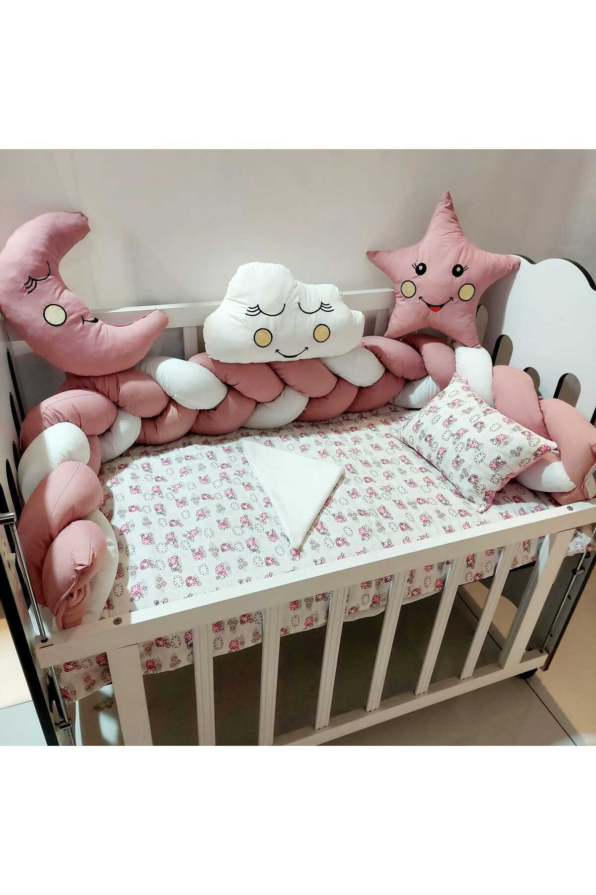 3Lü Örgülü Kenar Koruma Süslü Yastık 7 Parça 60*120 Cm Bebek Beşik Uykuseti