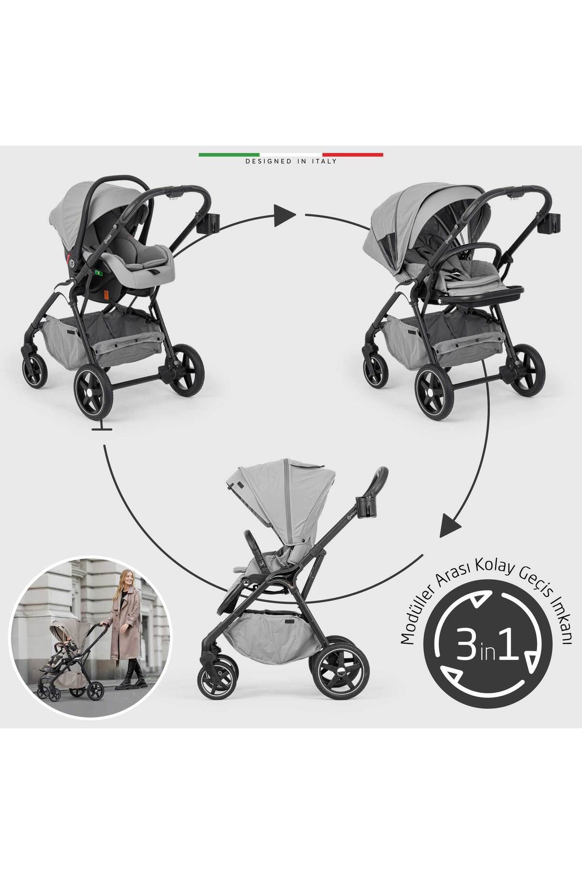 Hera Travel Sistem Bebek Arabası Silver gri