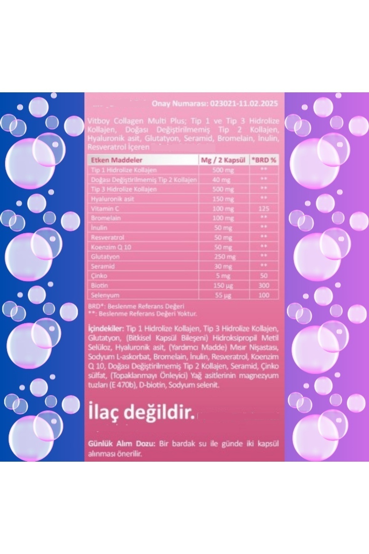 Vitboy Hidrolize Kolajen Multi Plus Tip 1,2,3 Prebiyotik,bromelain,glutatyon,seramid,çinko,biotin 60 Kapsül