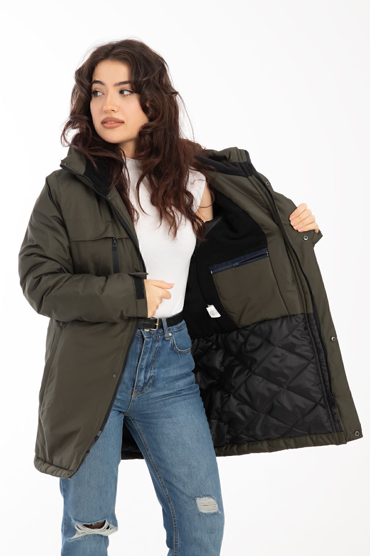 Haki rengiyle doğal ve şık bir görünüm sunar, her türlü kışlık kombinle uyum sağlar.
