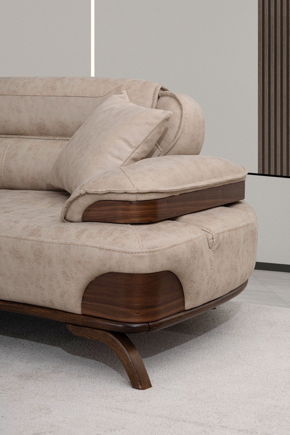 - Nubuk kumaşıyla üstün konfor sunan bu takım, modern yaşam alanlarına şıklık katıyor.