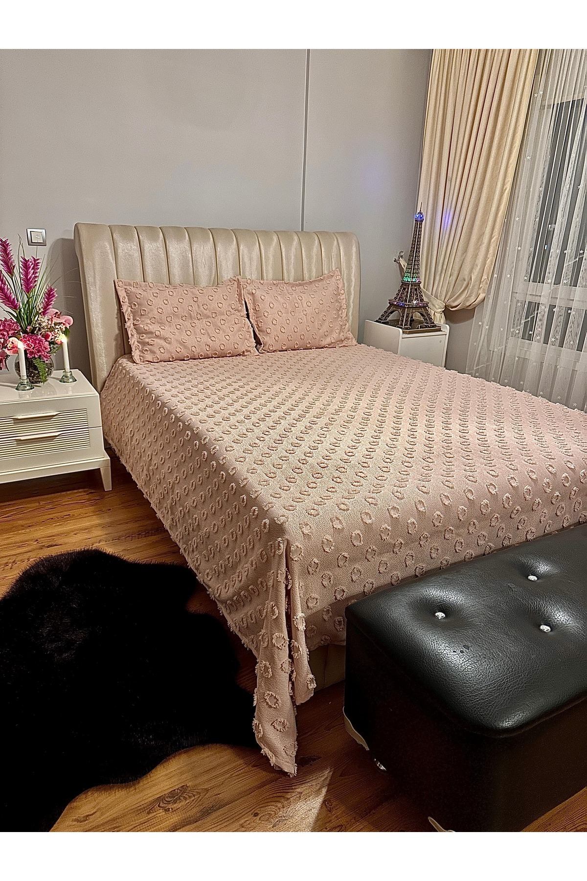 240 x 250 cm boyutlarındaki geniş tasarımı çift kişilik yataklara mükemmel uyum sağlar.
