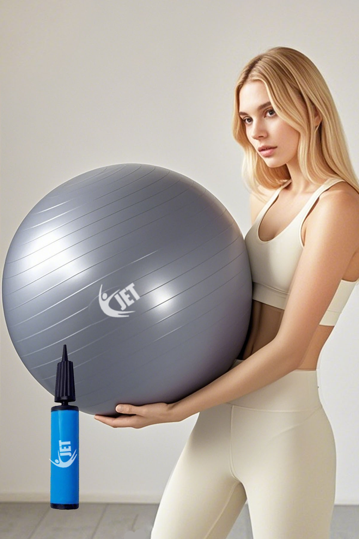 - 65 cm çapında, gri renkli anti-burst pilates topu ile esneklik ve denge egzersizlerinizi artırın.