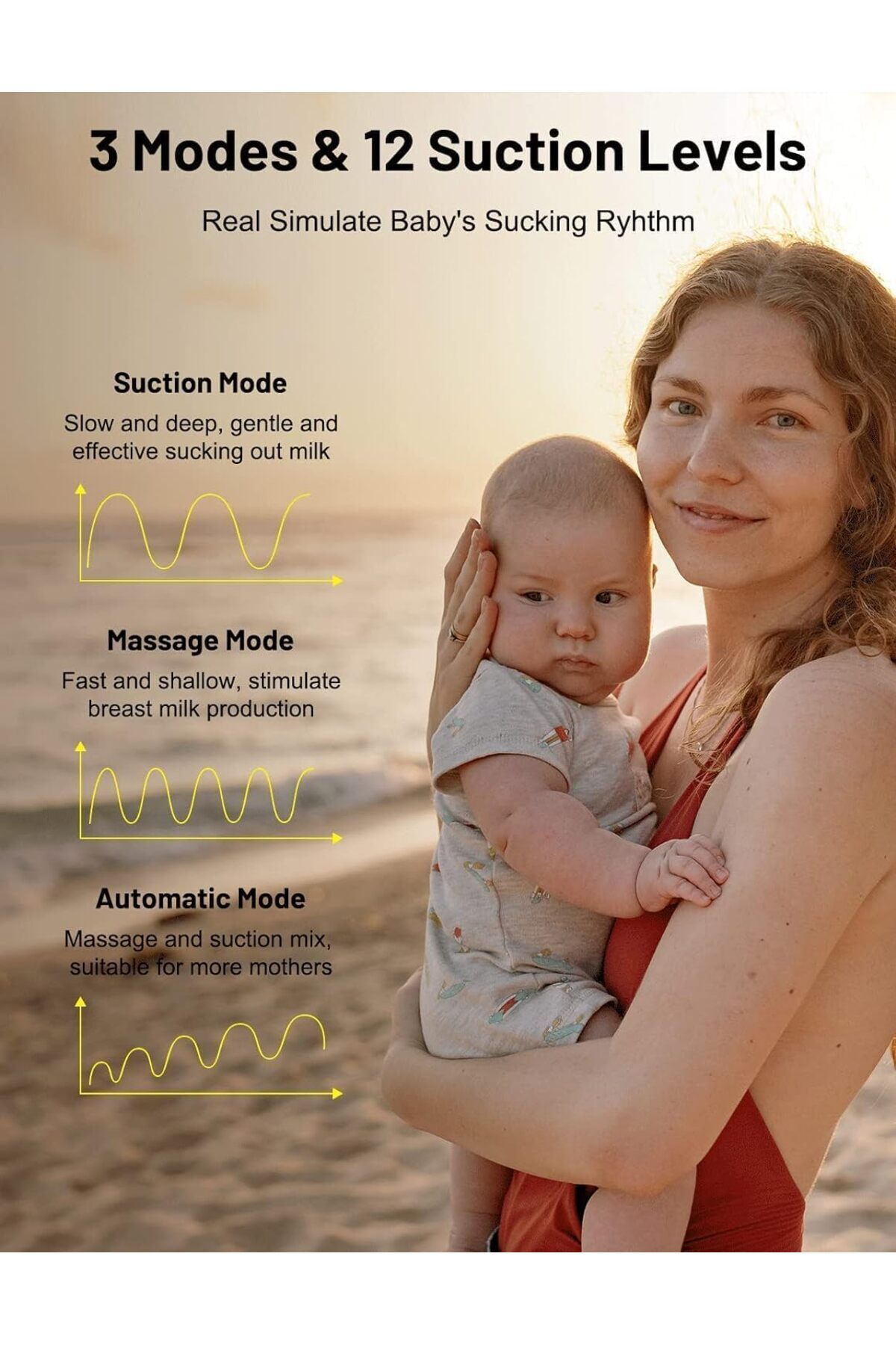Elektrikli Taşınabilir Göğüs Pompası, 3 Mod, 12 Seviye, LCD Ekran, Sızdırmaz