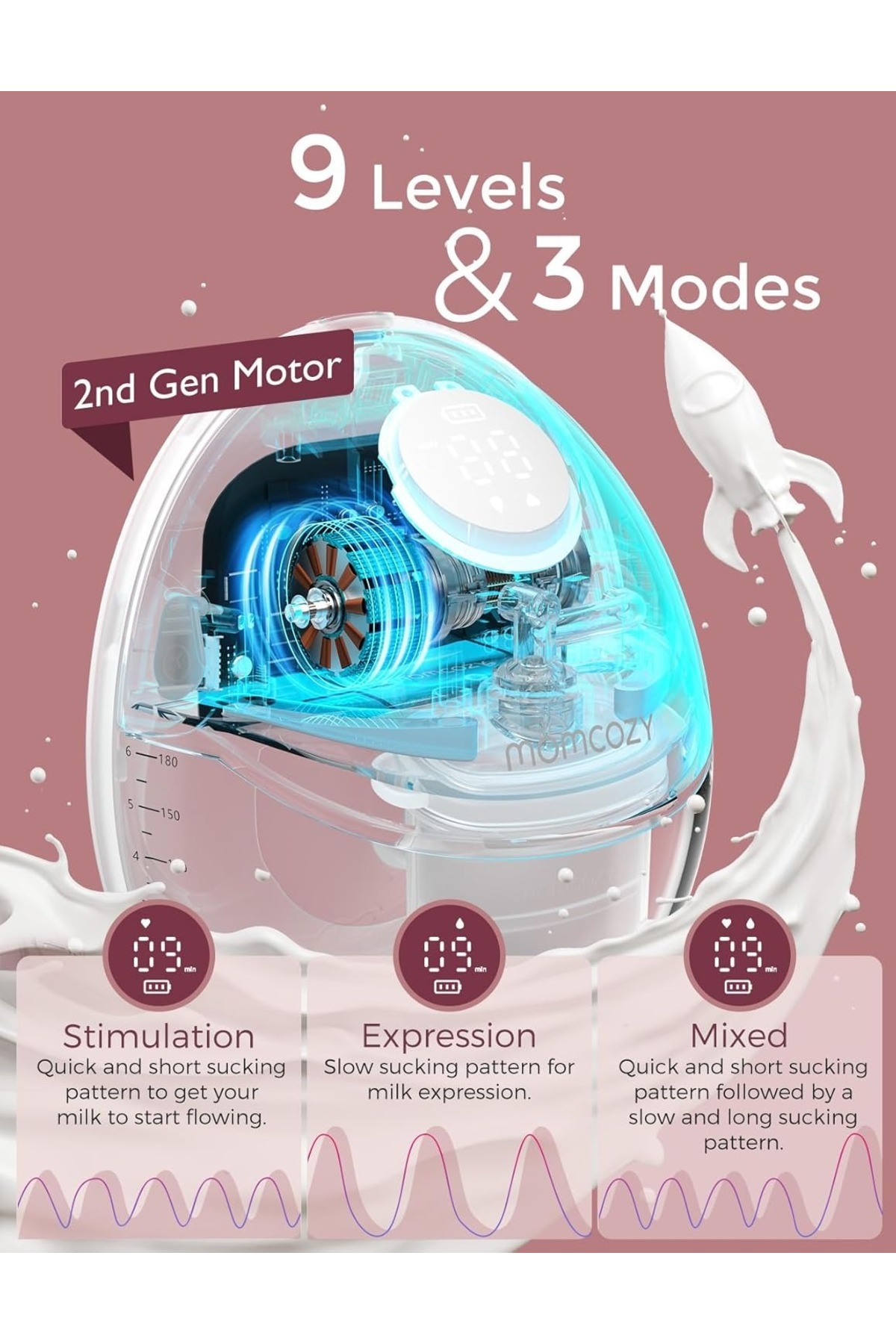 Momcozy M6 Taşınabilir Elektrikli Göğüs Pompası 3 Mod, 9 Seviye, 295 Mmhg Güçlü Motor