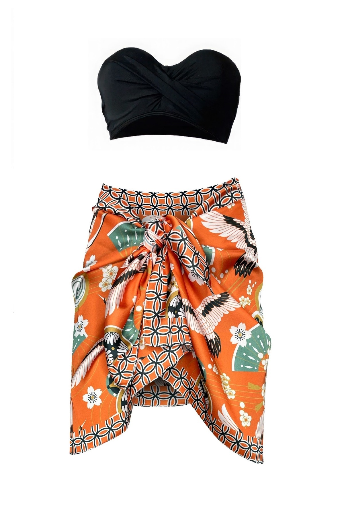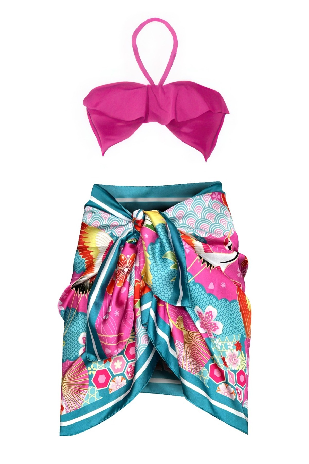 - Plaj tekstil koleksiyonundan gelen bu pareo, beachwear ortamları için idealdir ve saten detaylarıyla zarif bir görünüm sunar.