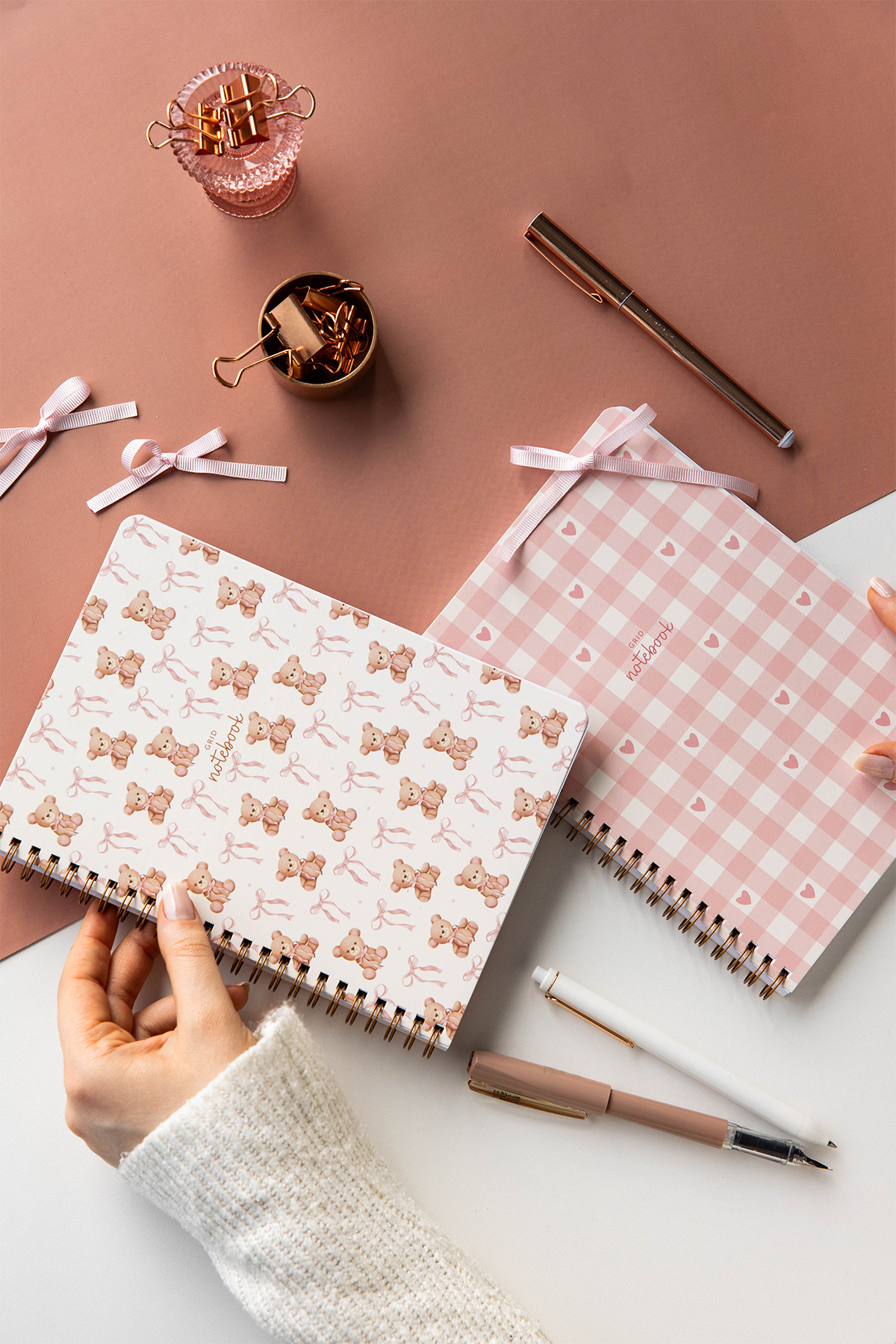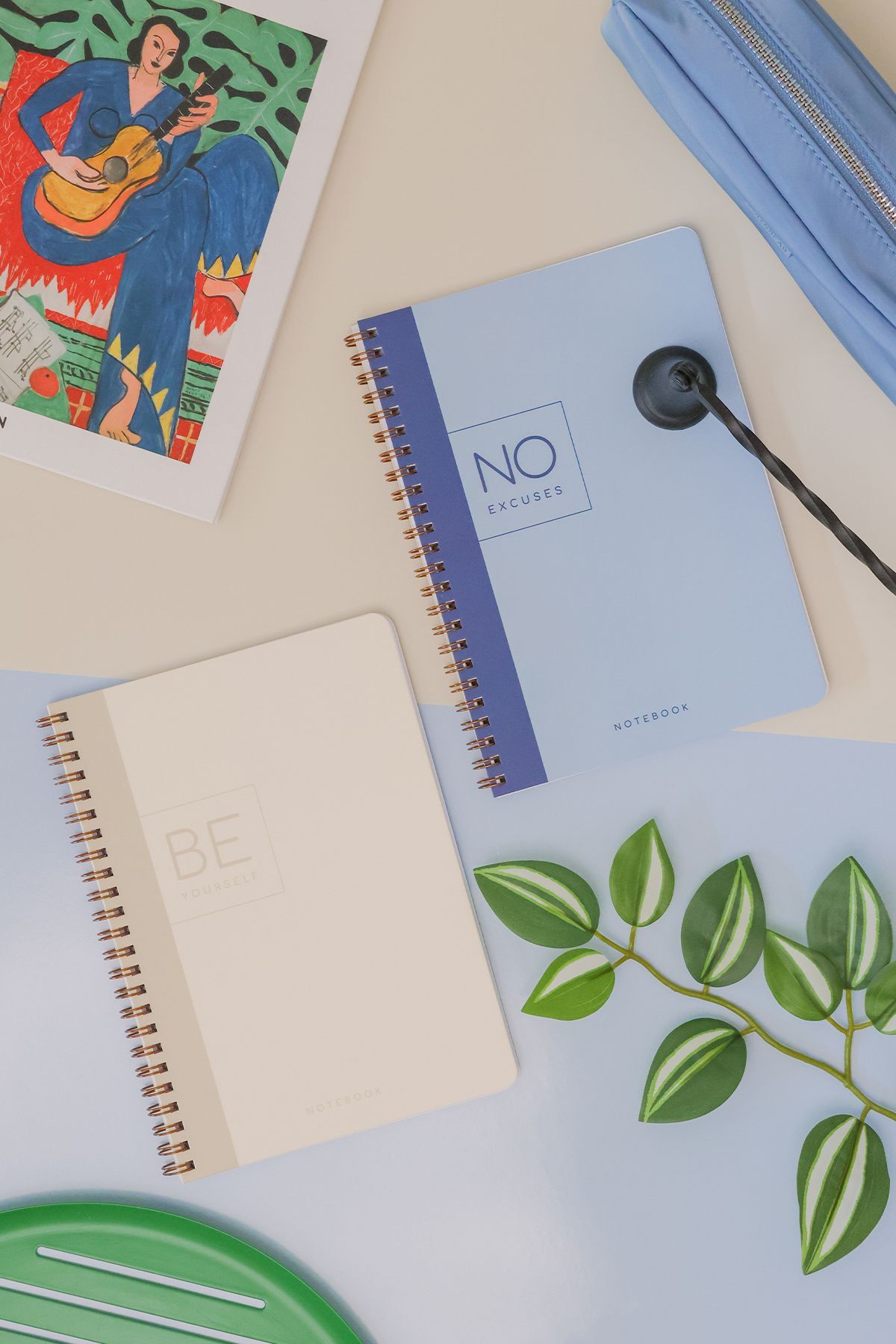 A5 Spiralli Karton Kapak 2’li Set Kareli Okul Defteri 80 yaprak, Ders Programlı Leopar