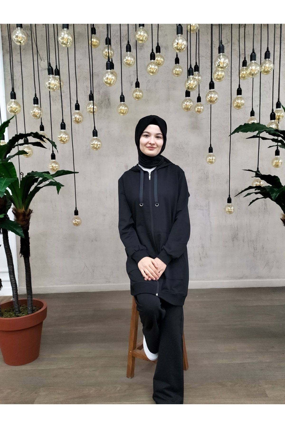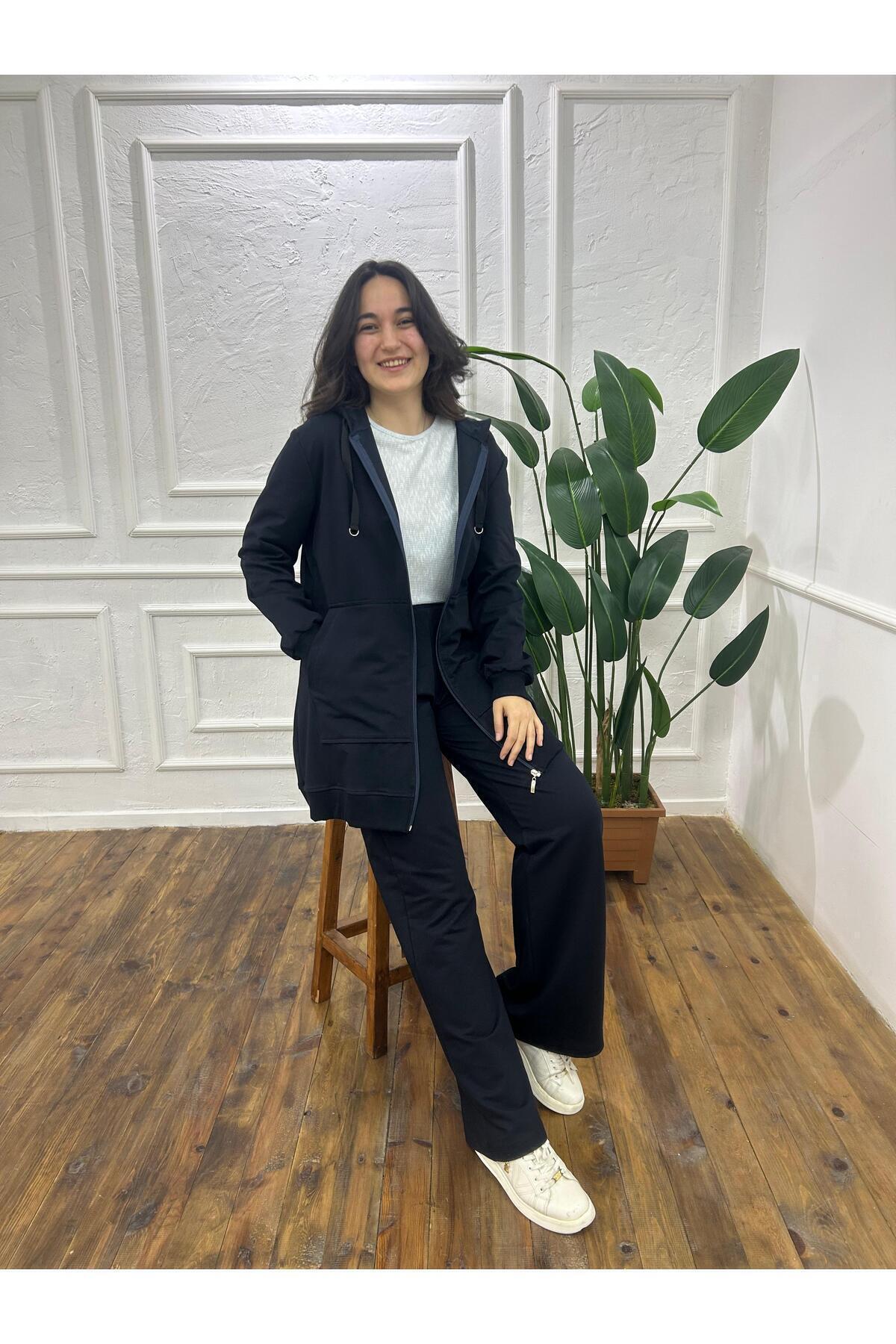 - Düz deseniyle sadelikten yana olanların beğenisine sunulan bu eşofman takımı, kombin yapmayı kolaylaştırır.