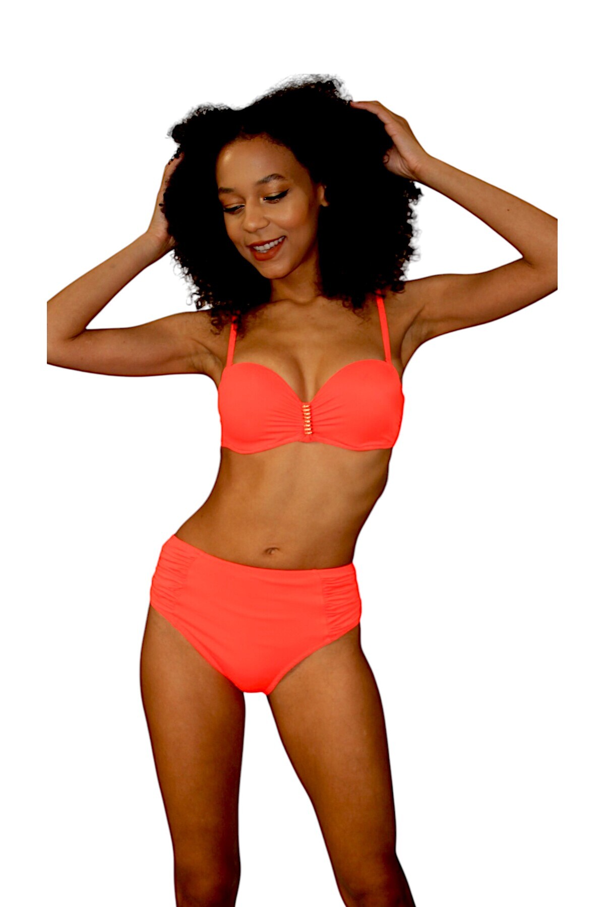 - Üst silueti straplez olan bu bikini üstü, modern ve feminen bir görünüm sağlar.