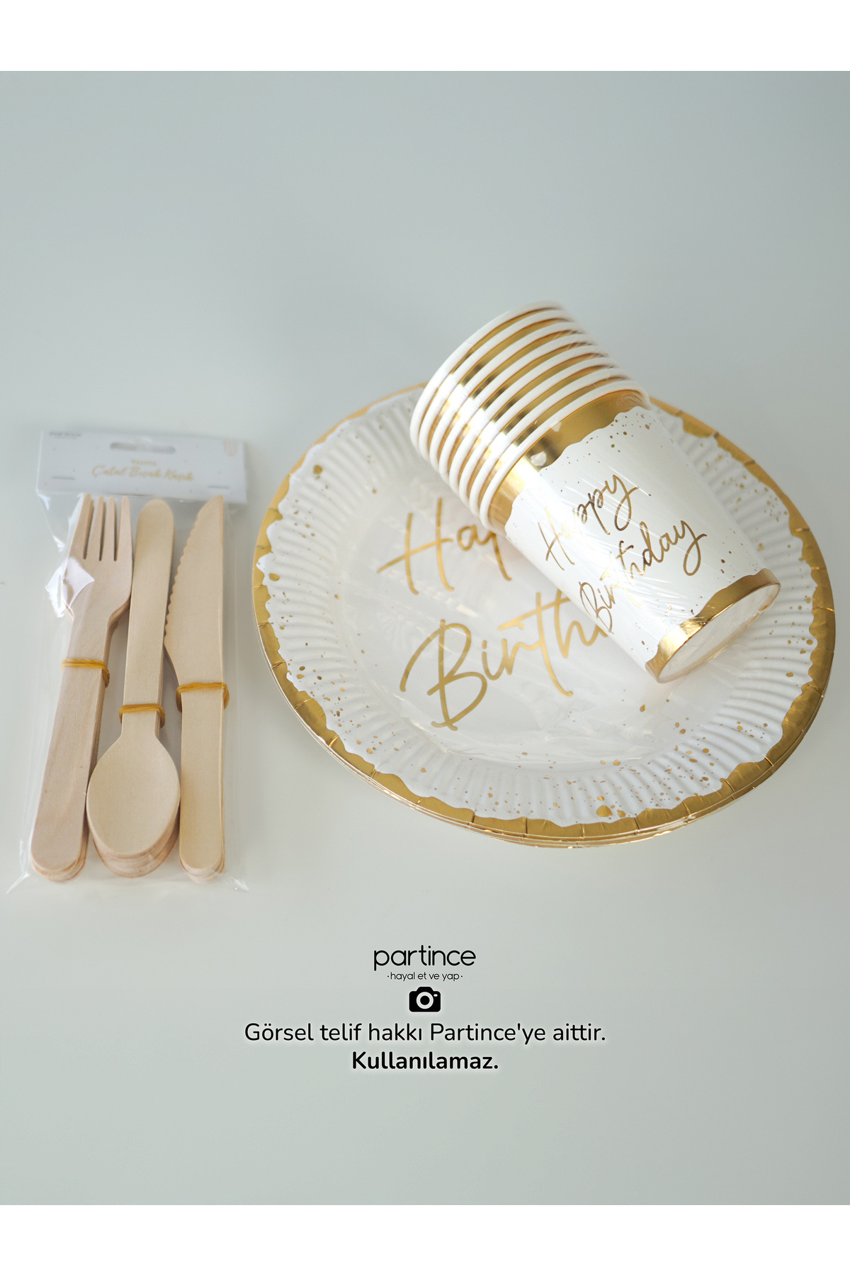 Happy Birthday Tema Kullan At Karton Tabak Bardak Çatal Kaşık Bıçak 3 Parça Doğum Günü Parti Seti