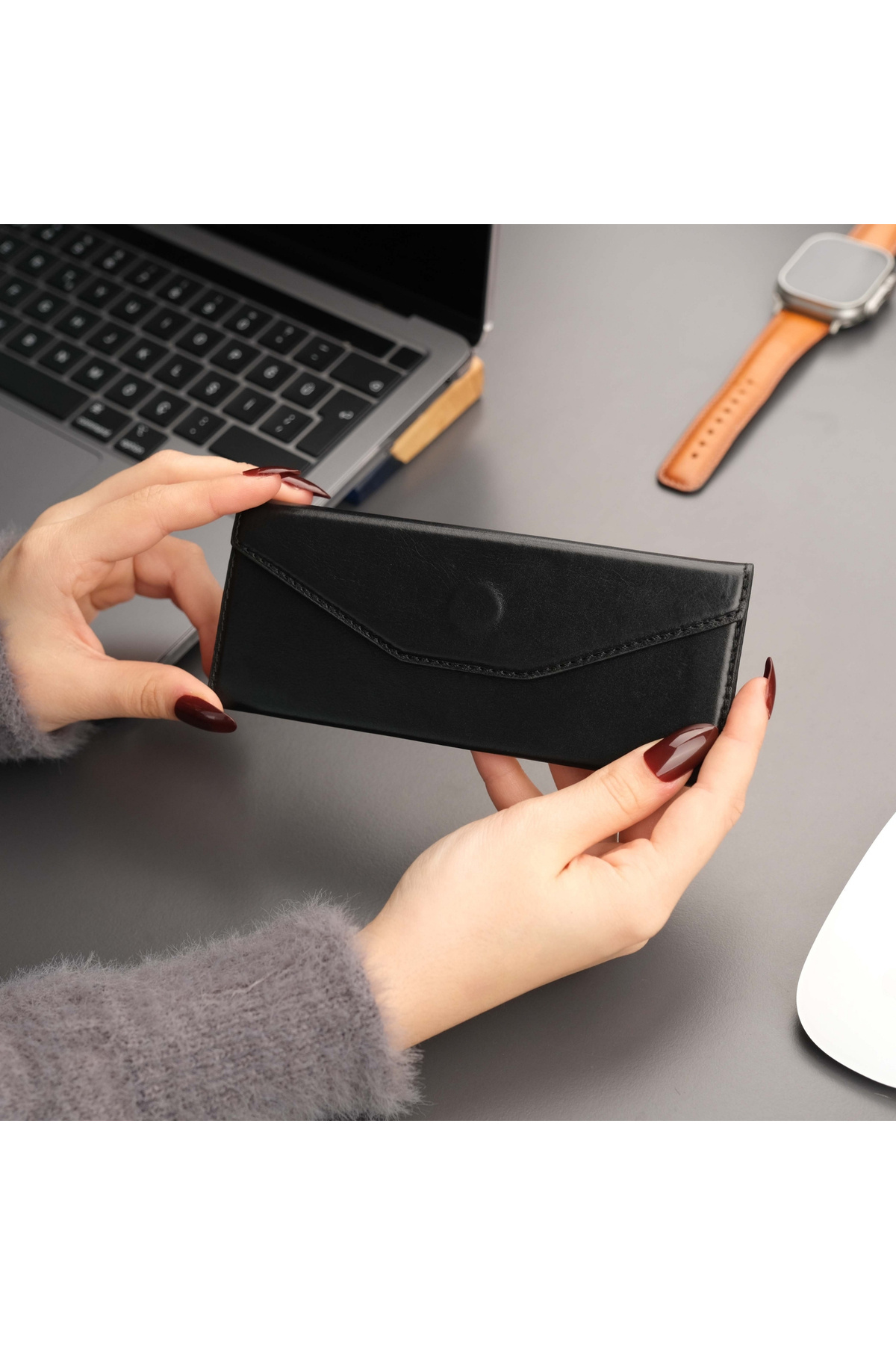 Pyramid Deri Gözlük Kılıfı - Optik ve Güneş Gözlükleri İçin - Üçgen Dizayn & Katlanabilir Tasarım