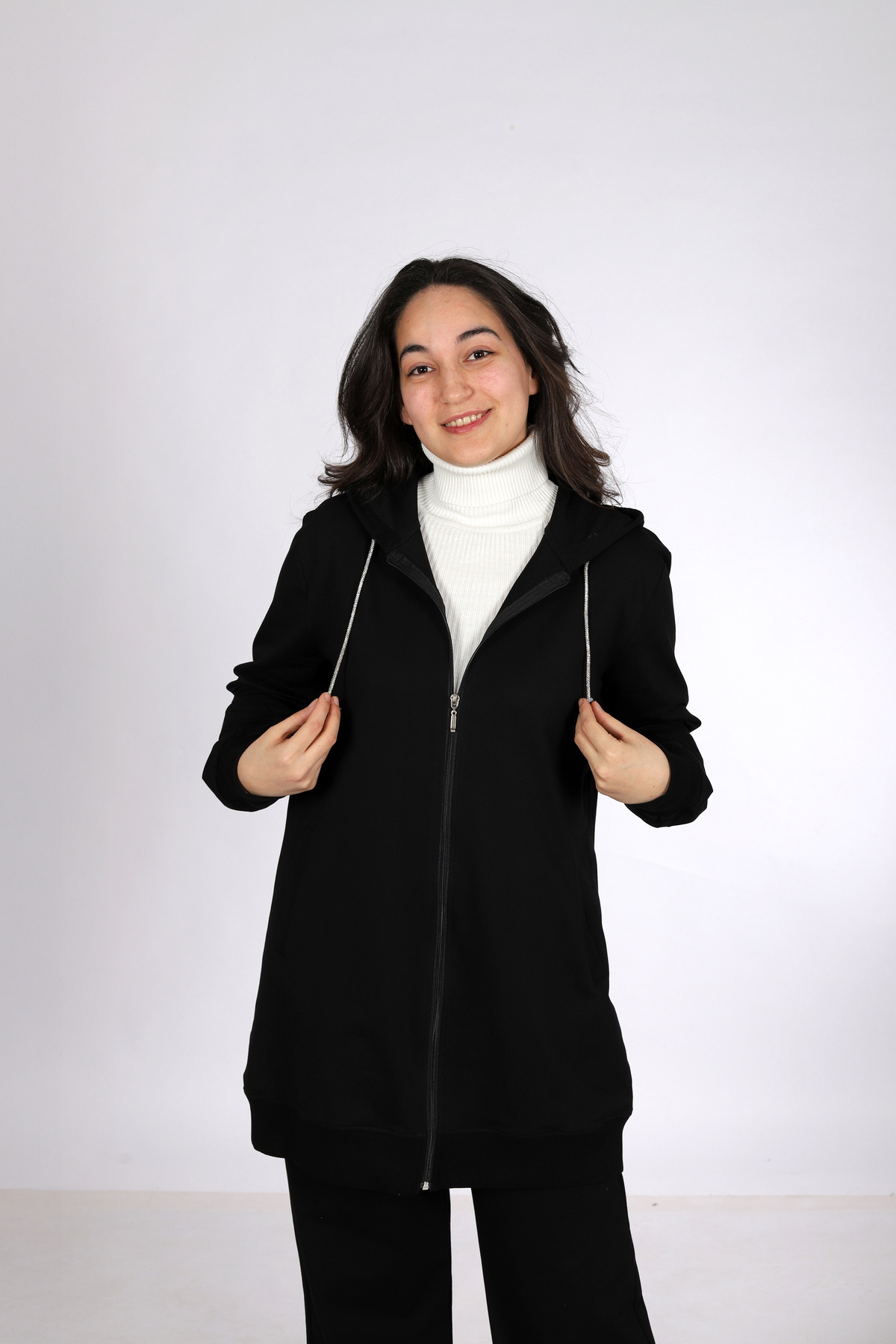 - Fermuarlı kapüşonlu yaka tipi hem pratik hem de estetik bir dokunuş katarken soğuk havalarda ekstra koruma sağlar.
