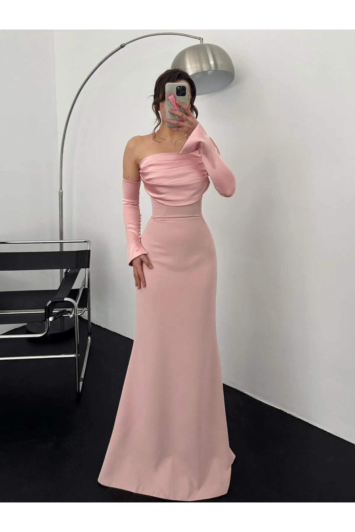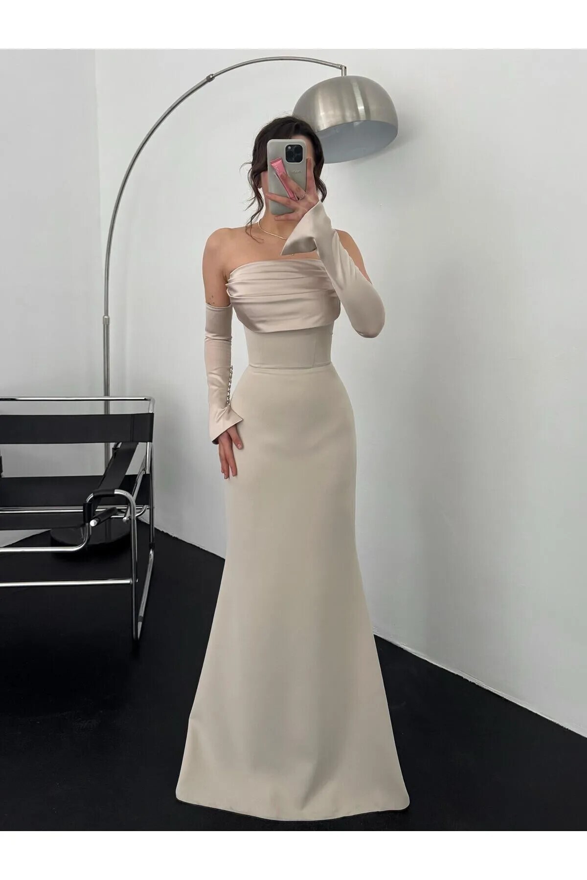 TAKMA SATEN DÜĞMELİ TASARIM DÜĞÜN DAVET BALO MEZUNİYET NİŞAN ELBİSESİ