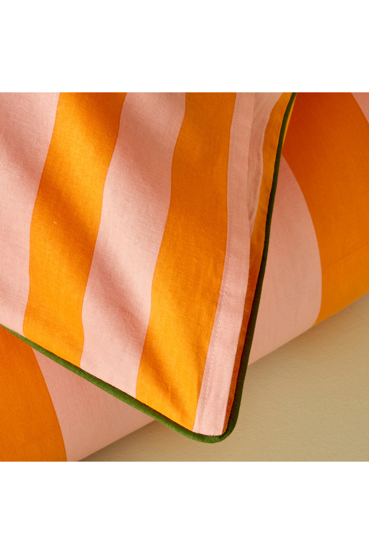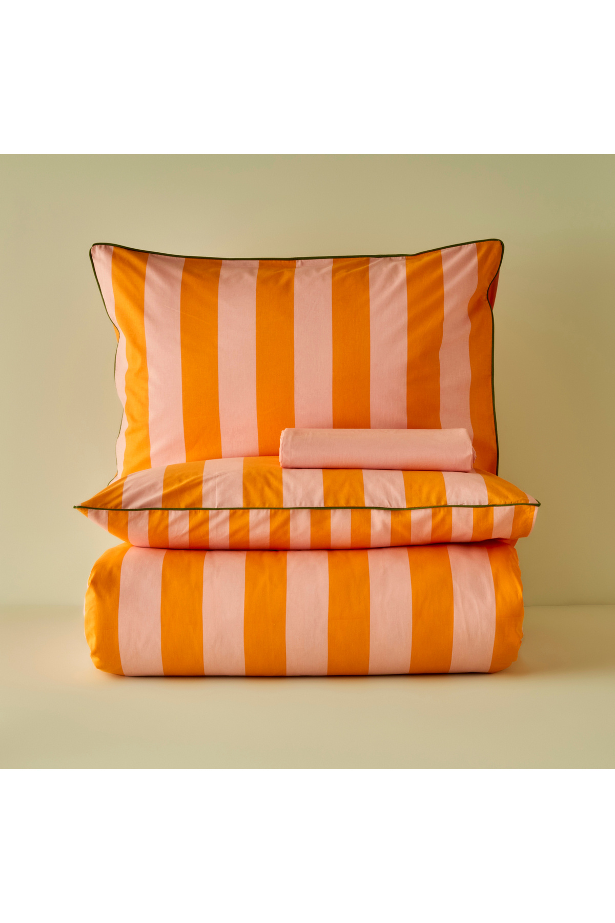 160x220 cm ebadında turuncu renkli Biyeli Line Tek Kişilik Nevresim Takımı.