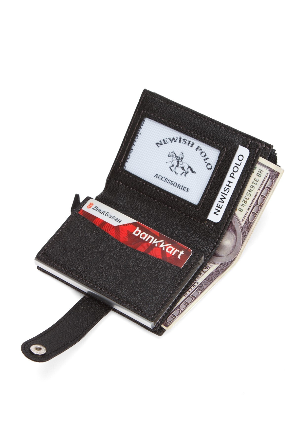 Erkek Akordiyon Mekanizmalı Kartlık ve Cüzdan - Siyah