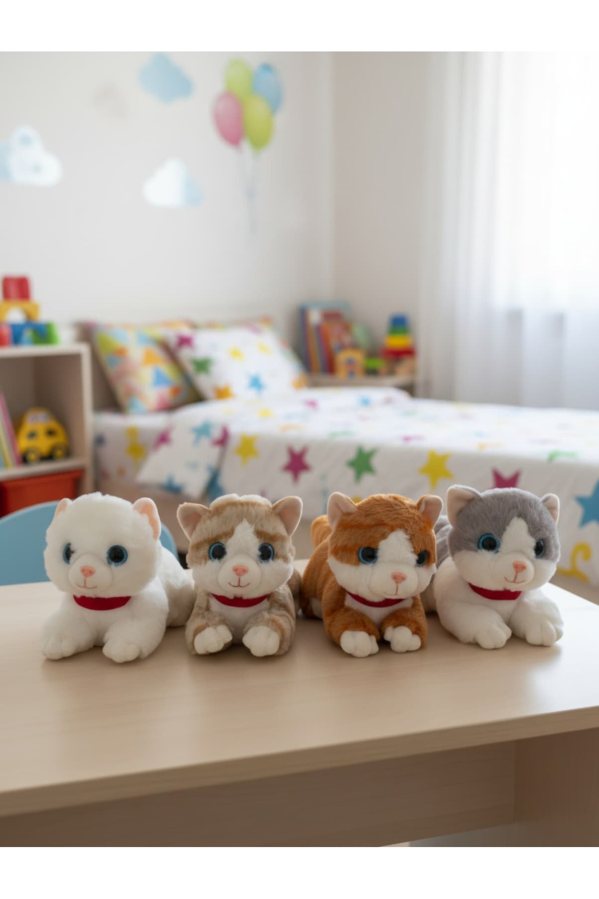 Sevimli peluş yavru kedi, çocukların oyun saatlerinde ve uykuda arkadaşlık eder