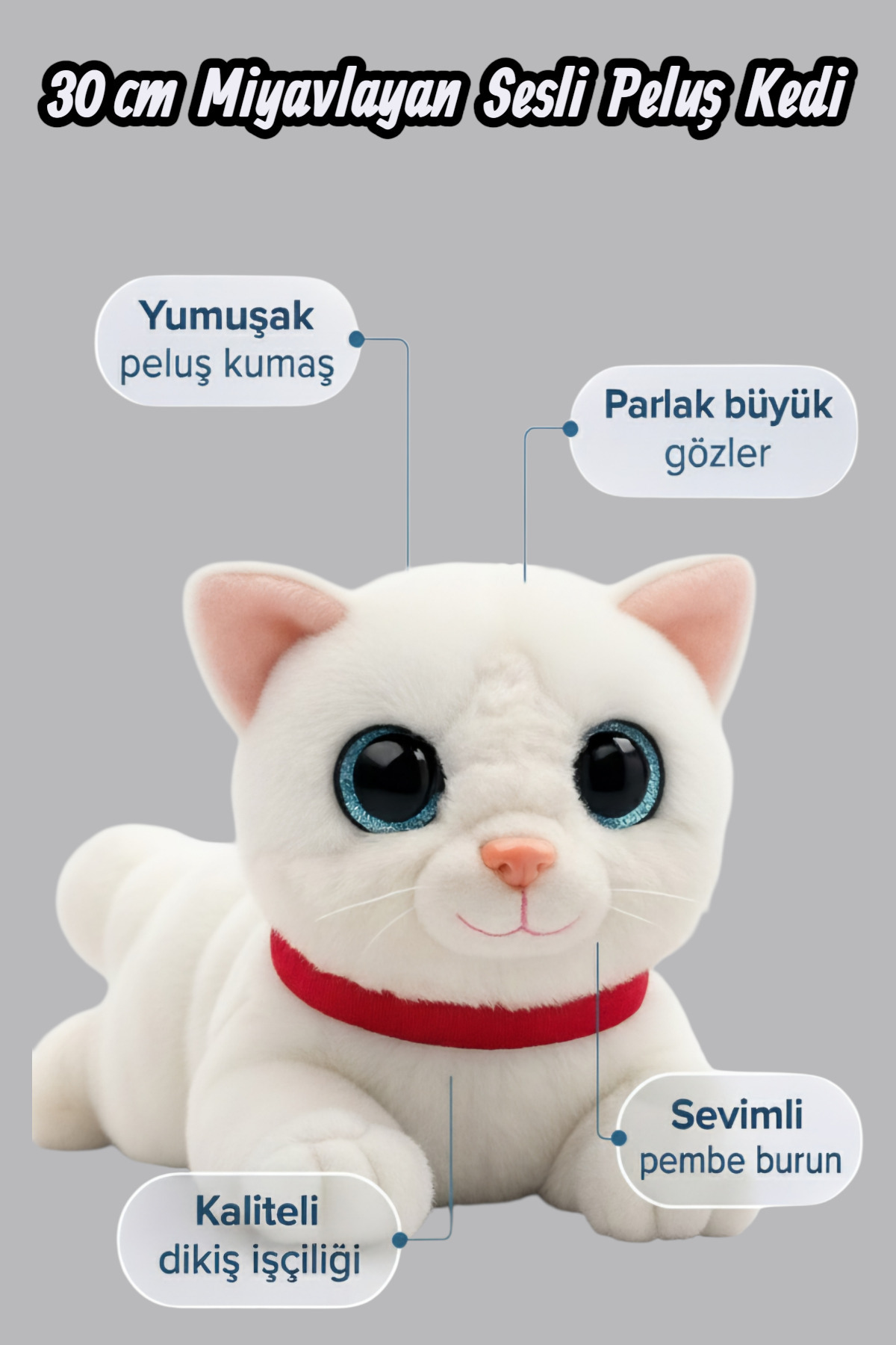 Sesli ve miyavlayan özellikleriyle interaktif bir deneyim sunar, çocukların duyusal gelişimine katkı sağlar.