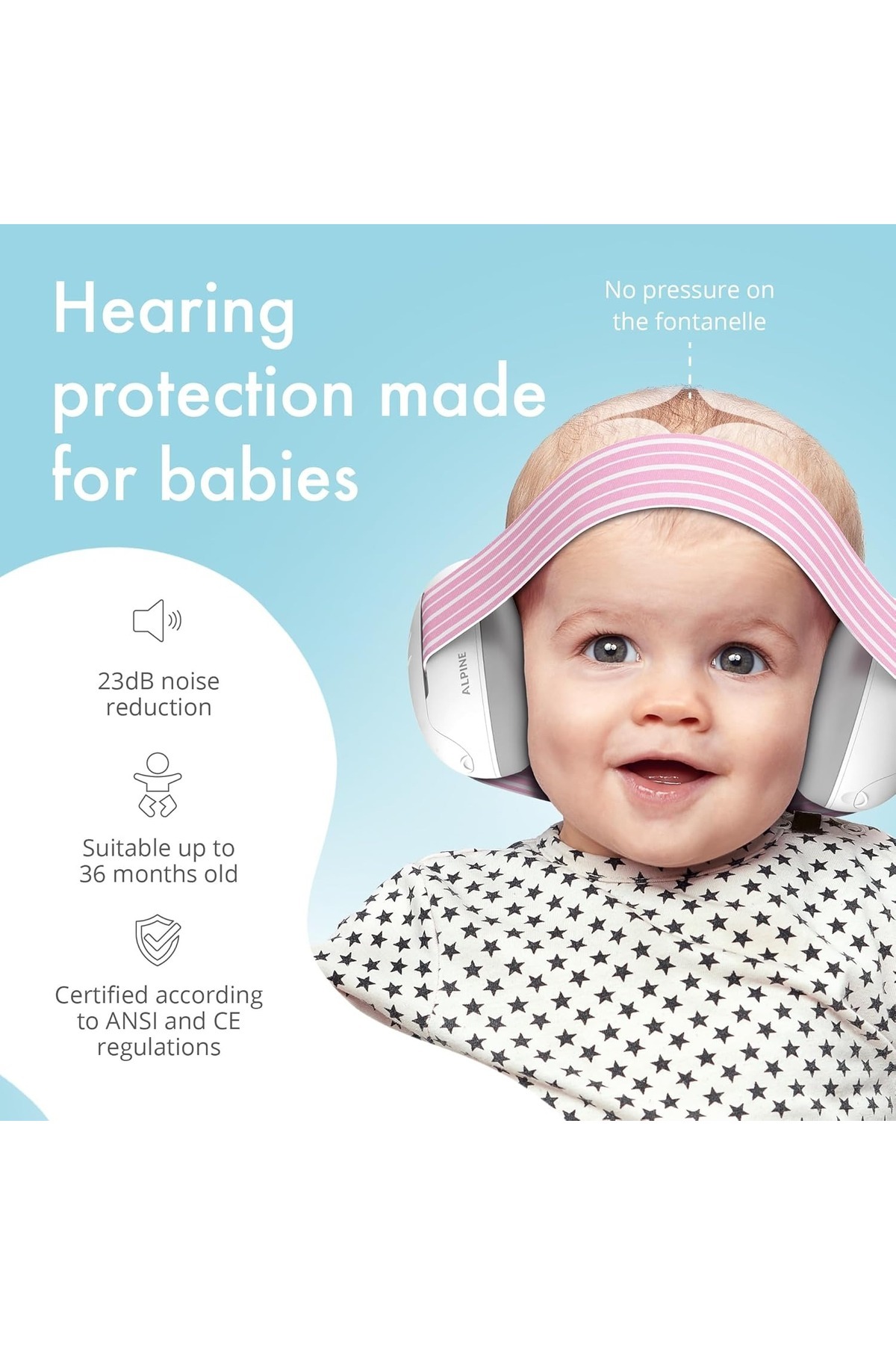 Baby Kulak Koruyucu, 23dB Gürültü Engelleme, 0-36 Ay Bebekler İçin Ayarlanabilir Baş Bantlı