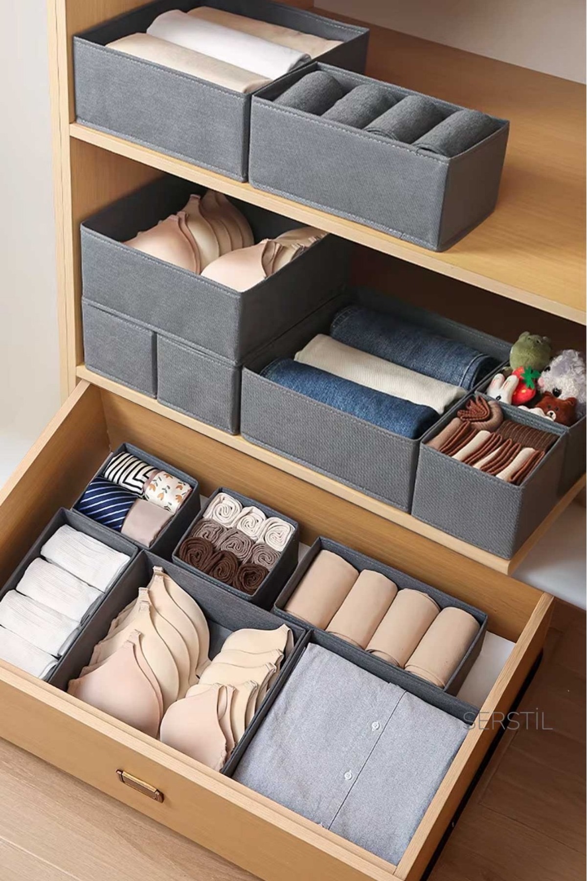 6'lı Çekmece Dolap Içi Düzenleyici Kutu Set - Gri Çizgili