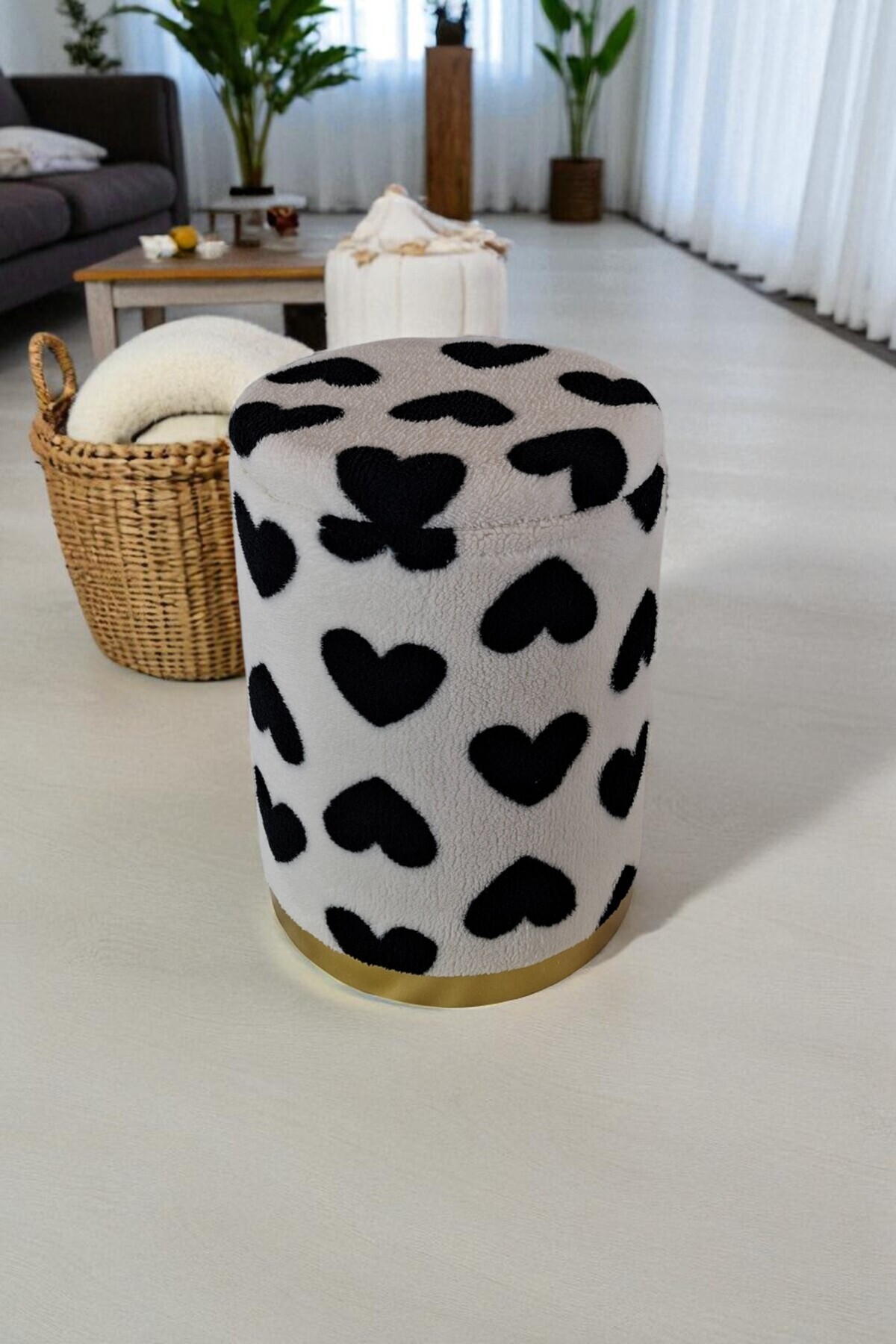 Gri Kadife Kumaş Dekoratif Silindir Koltuk Puf 32 X 43