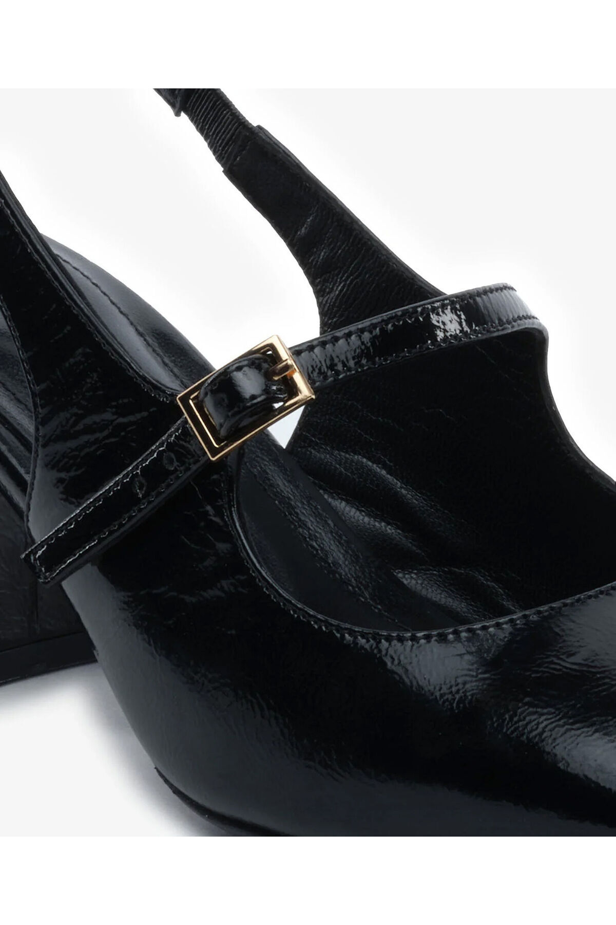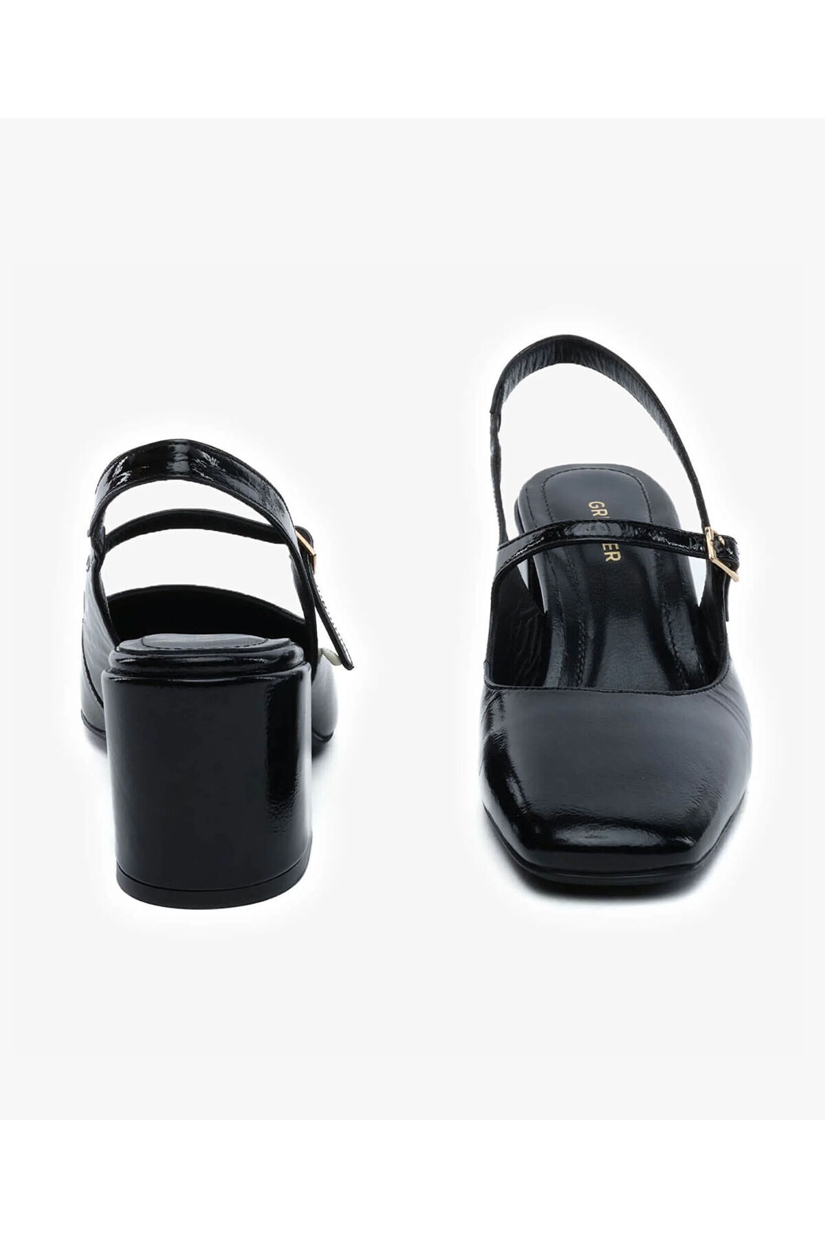 Kadın Siyah Kırışık Rugan Hakiki Deri Topuklu Klasik Ayakkabı 5Y2TA59279