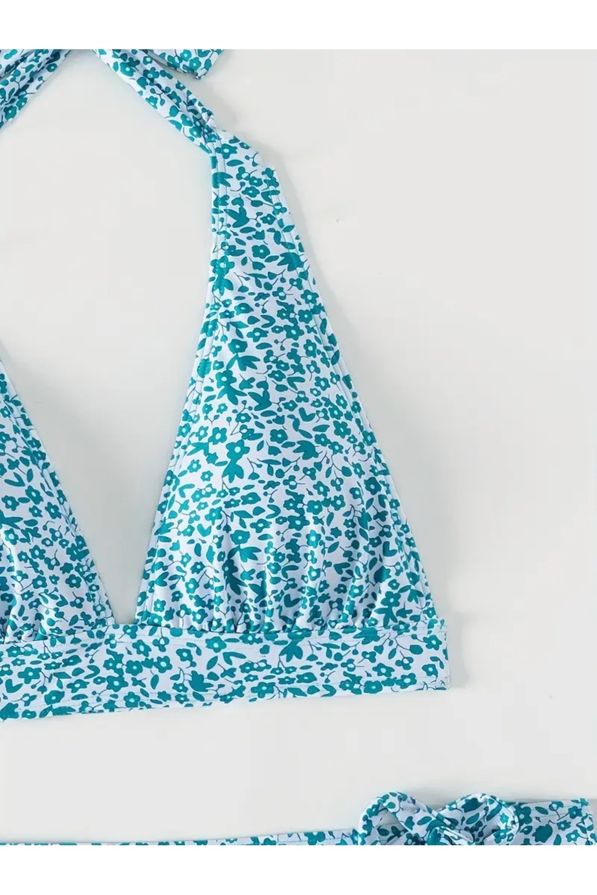 halter üst, fırfırlı etek ve bikini altından oluşur.