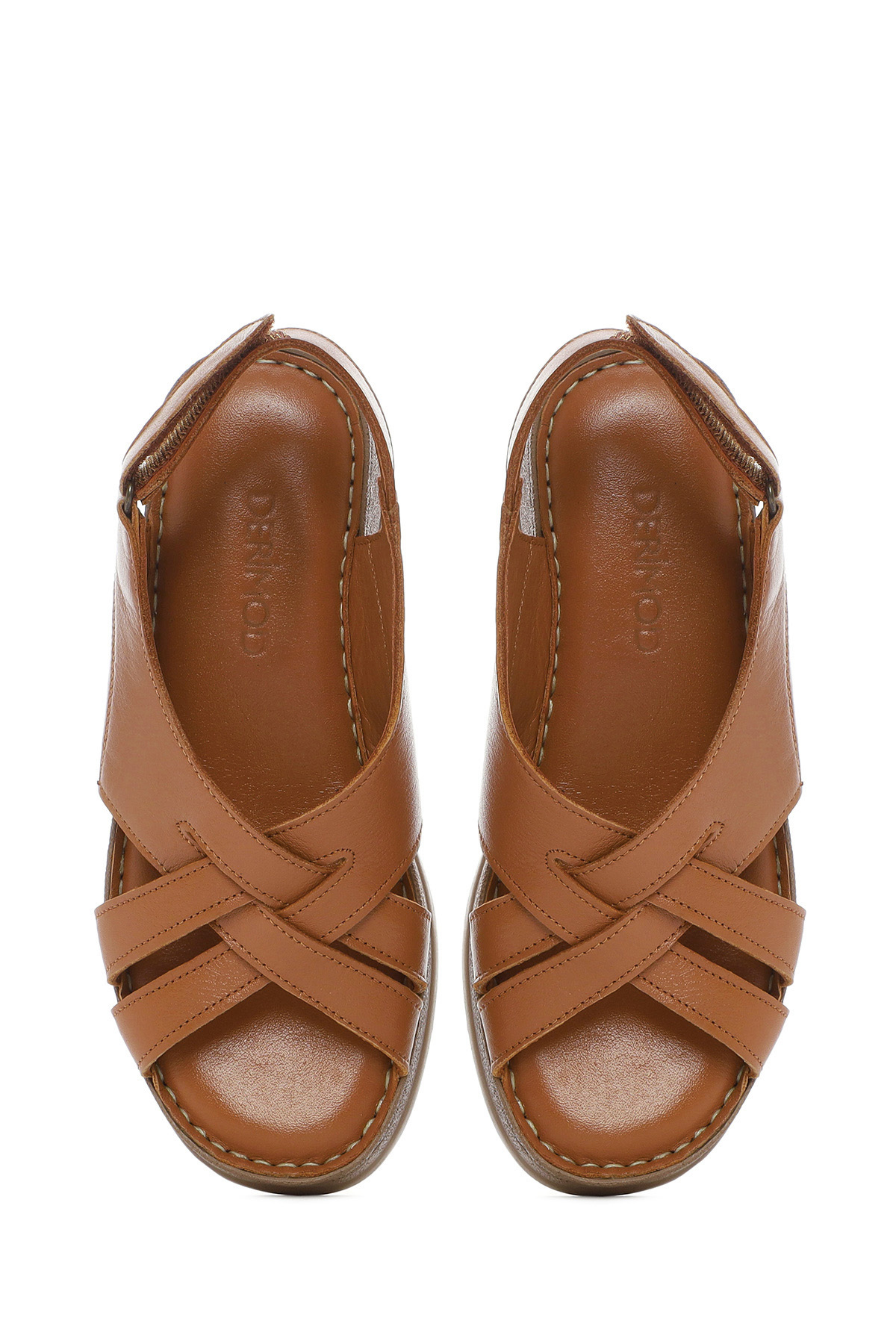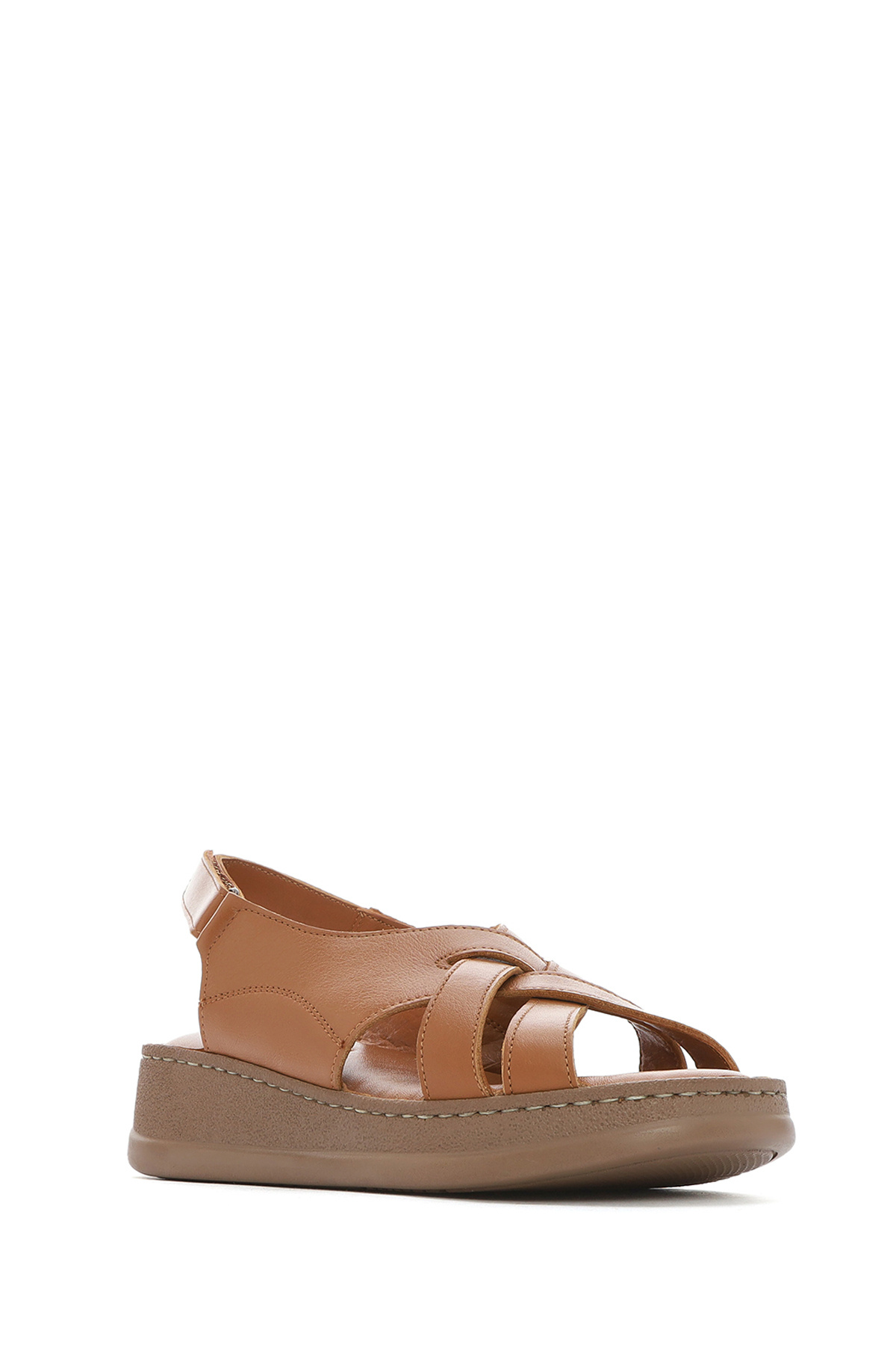 Kadın Taba Kalın Tabanlı Deri Comfort Sandalet Sığır derisi içermektedir.