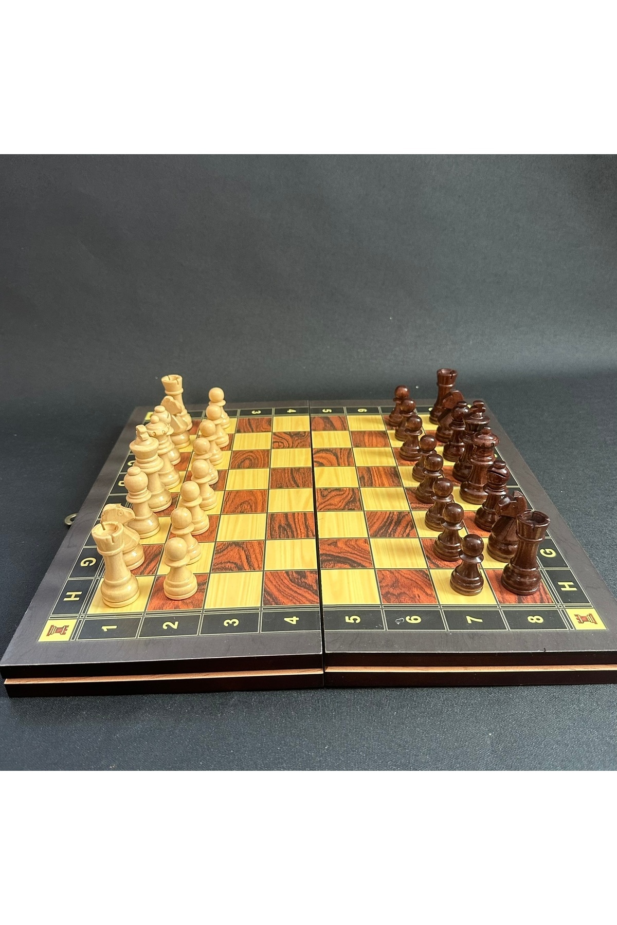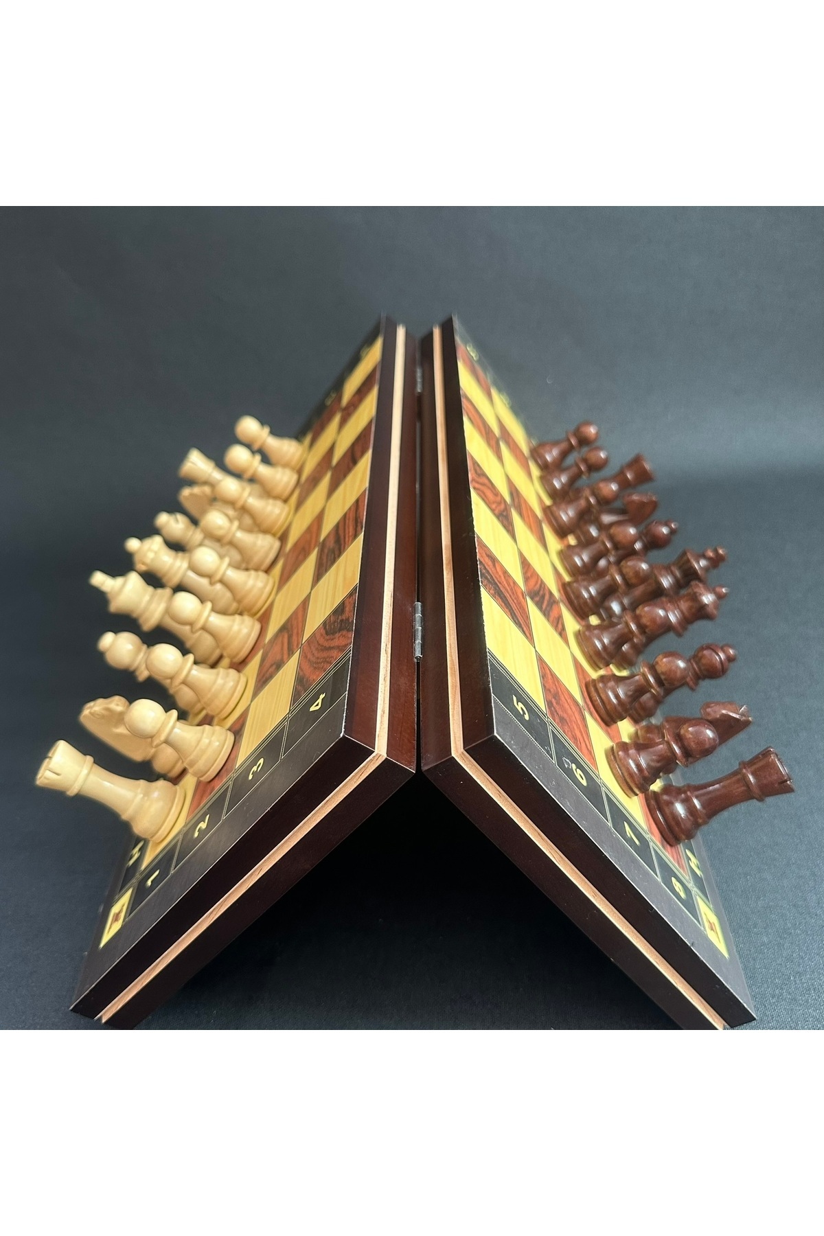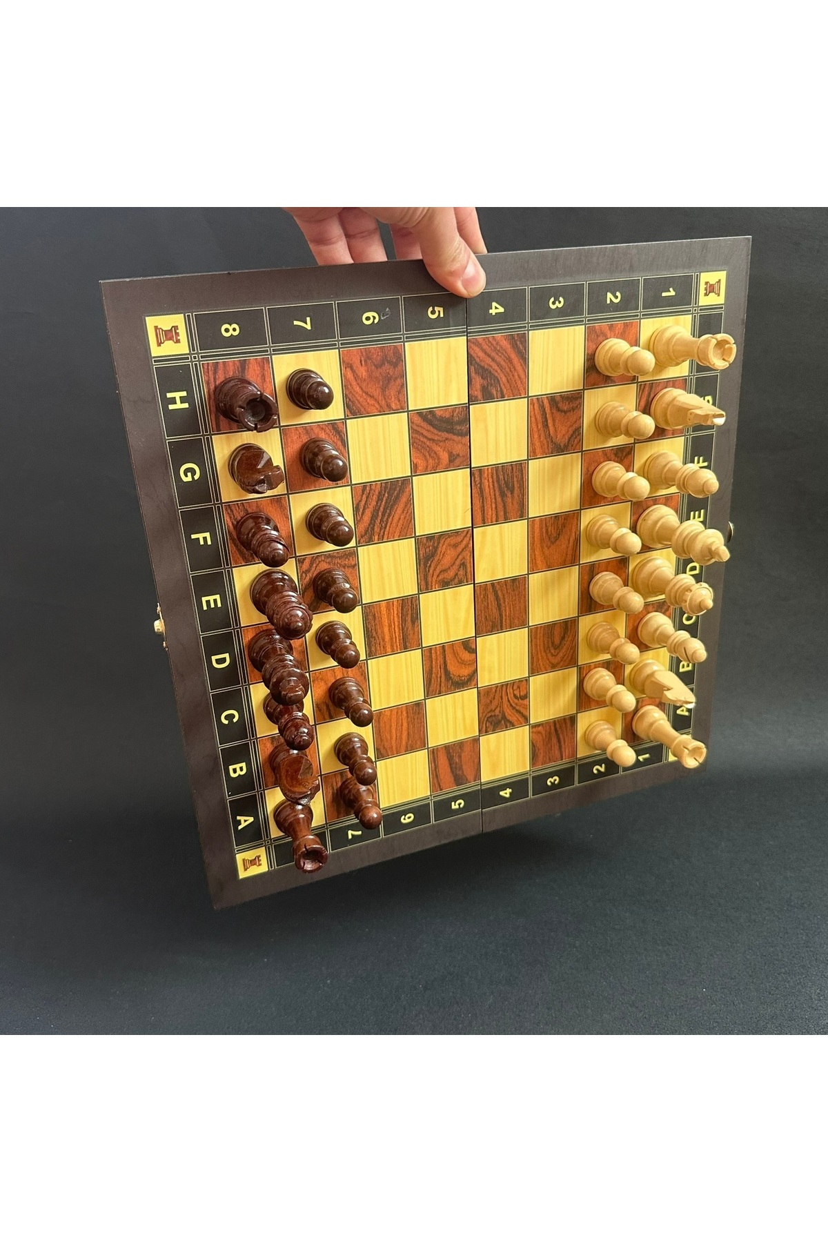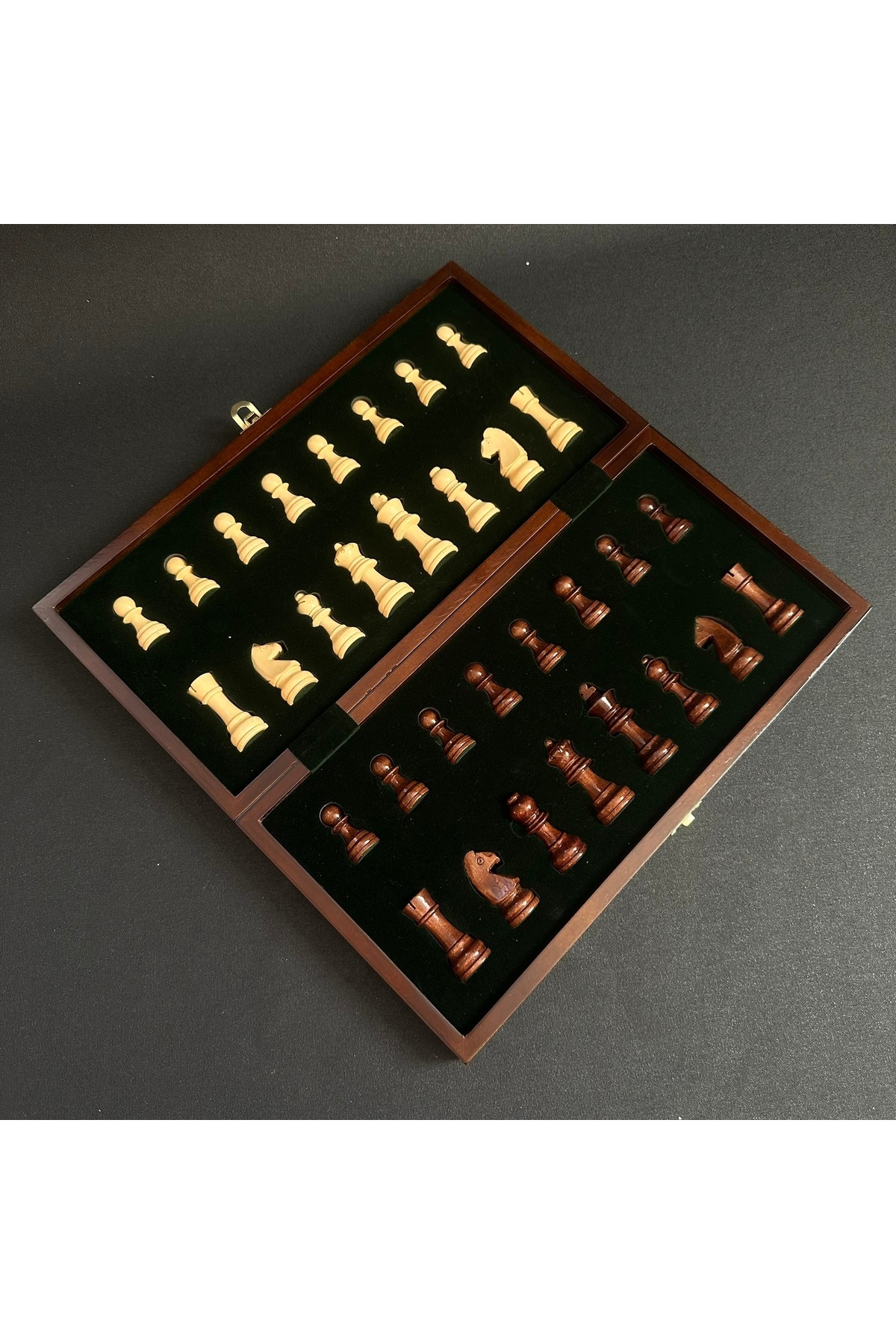 Ahşap Mıknatıslı Hazneli Satranç Takımı .