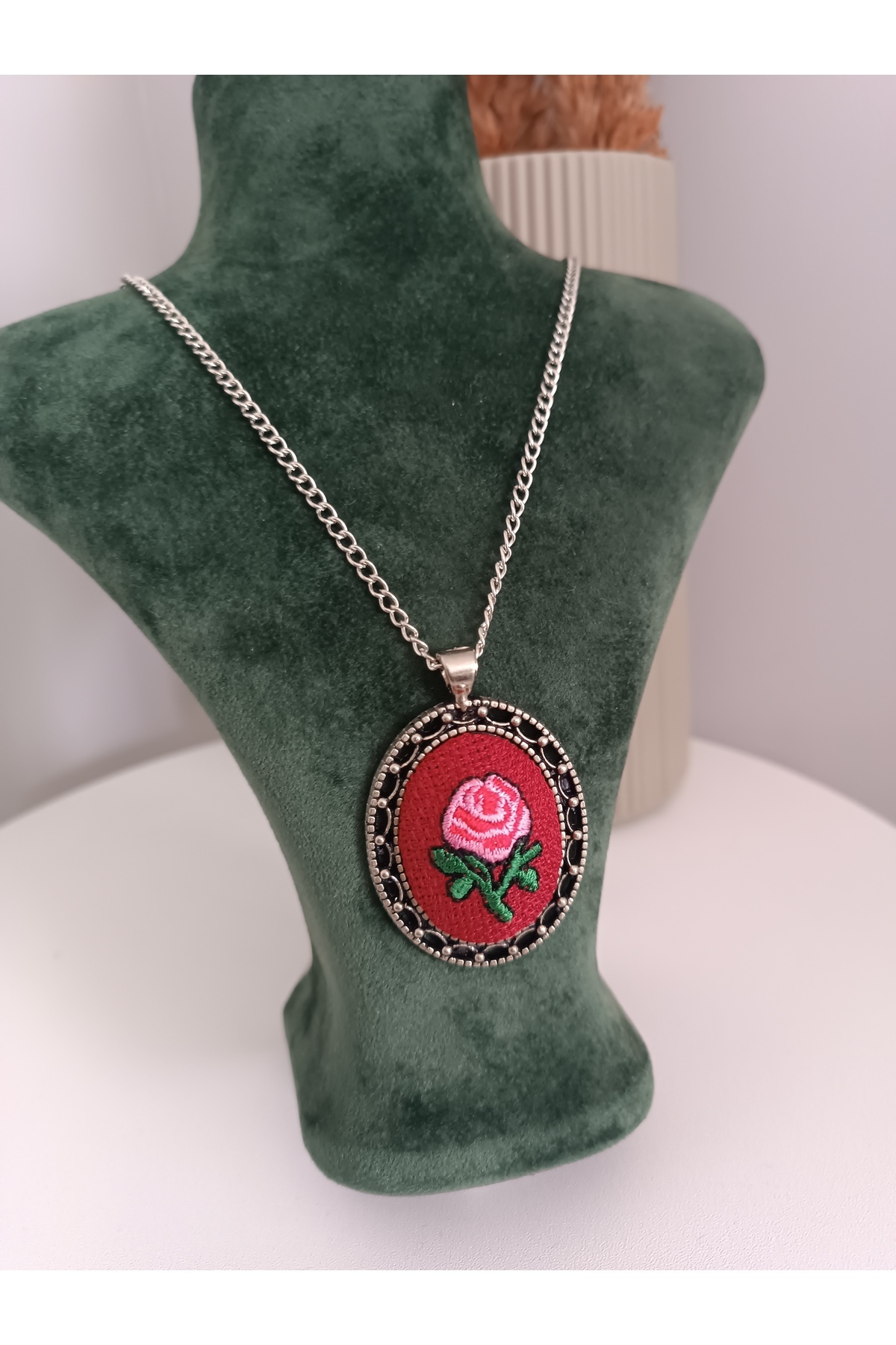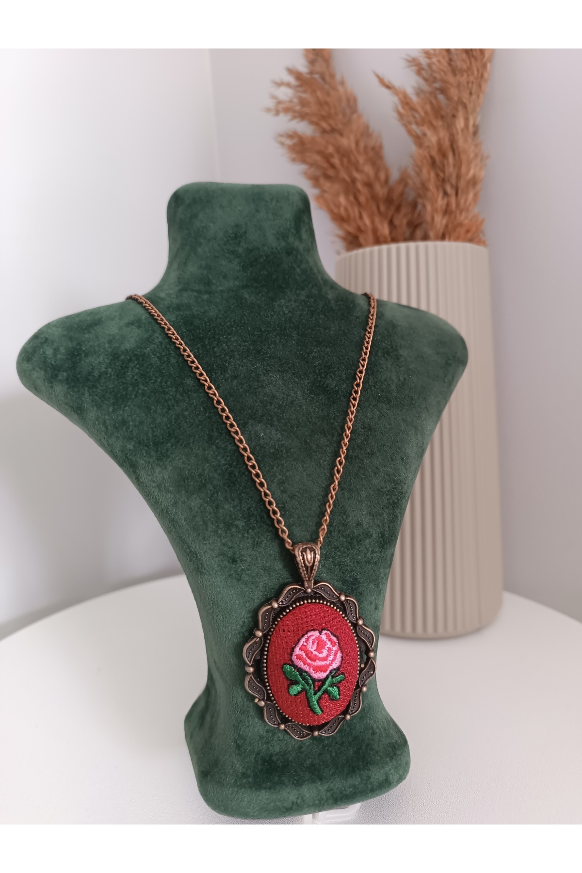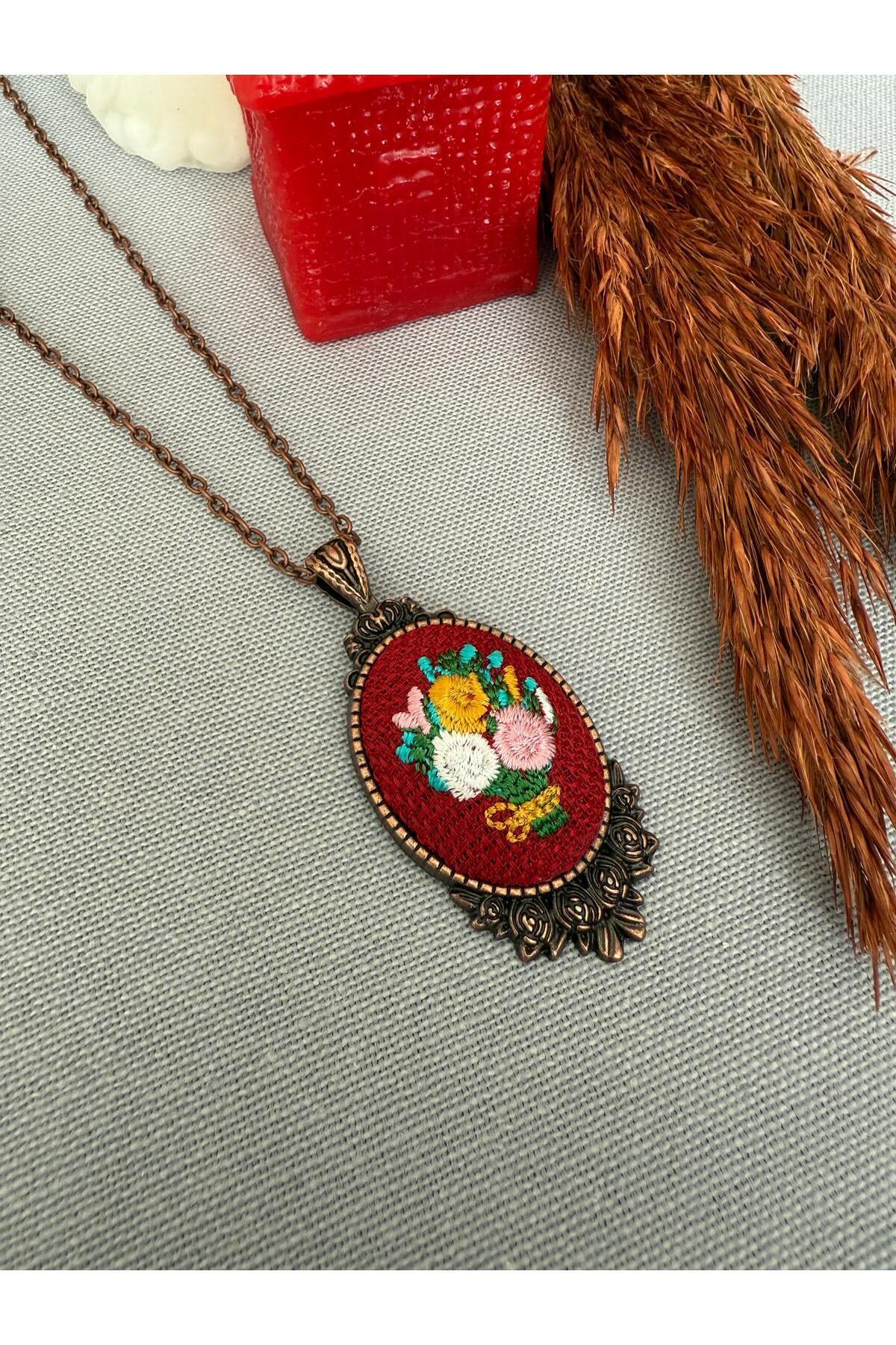 Tarzınıza sıcak, el emeği bir dokunuş katın! Geleneksel kanaviçe işçiliği ile hazırlanan bu özel tasarım kolye, otantik ve zarif stilinizi ön plana çıkarır.