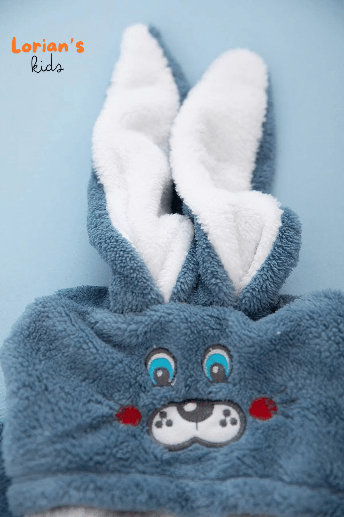 Lacivert Tavşan Unisex Yumuşak Peluş Fermuarlı Bebek Tulumu -