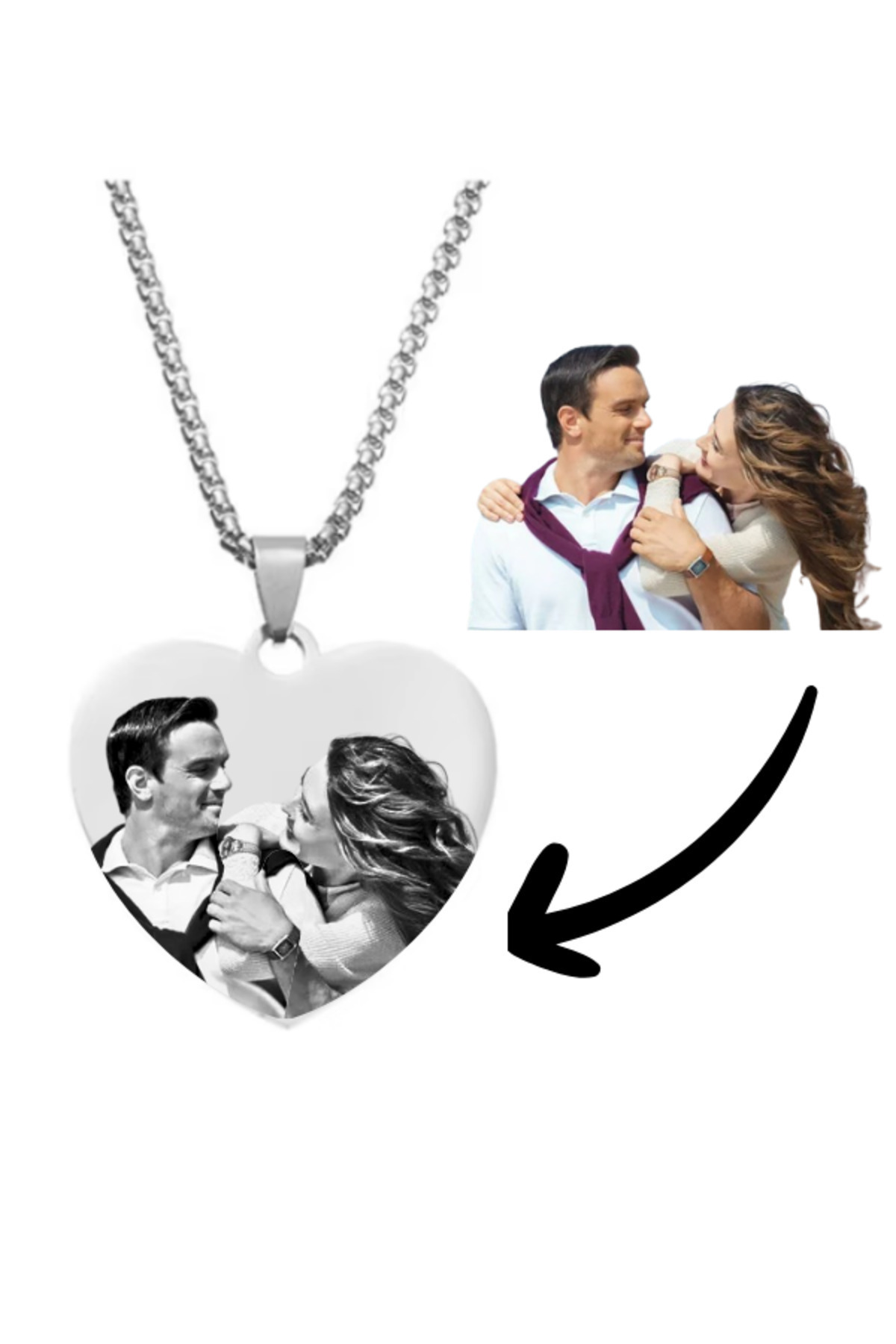 Kişiye Özel Lazer İşleme Resimli Kalp Kolye