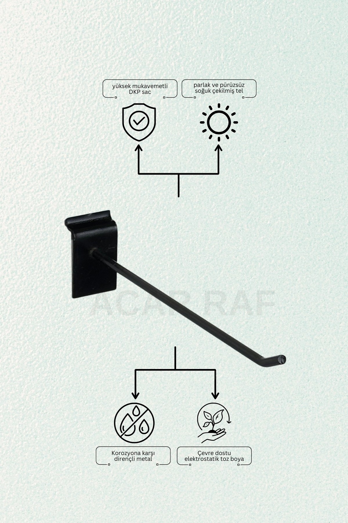 Kanca arkalığının S yapısı sayesinde kancayı panele direkt yerleştirebilirsiniz ancak dilerseniz vida aracılığıyla kancayı panelinize daha da sağlam bir şekilde sabitleyebilirsiniz. Bunun için arkalıkta vida için yuva da bulunmaktadır.