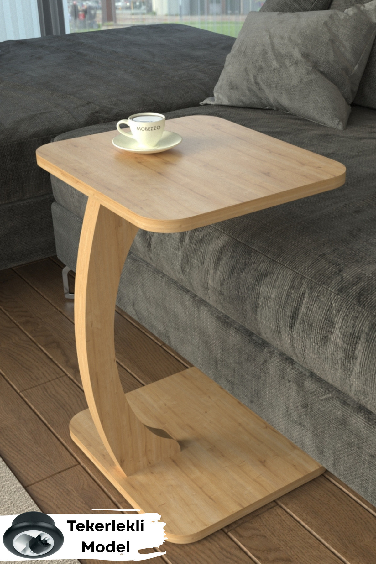 Tekerlekli Dikdörtgen C Sehpa Koltuk Yanı Laptop Masası Modern Zigon Yan Sehpa Salon Ofis Sehpası
