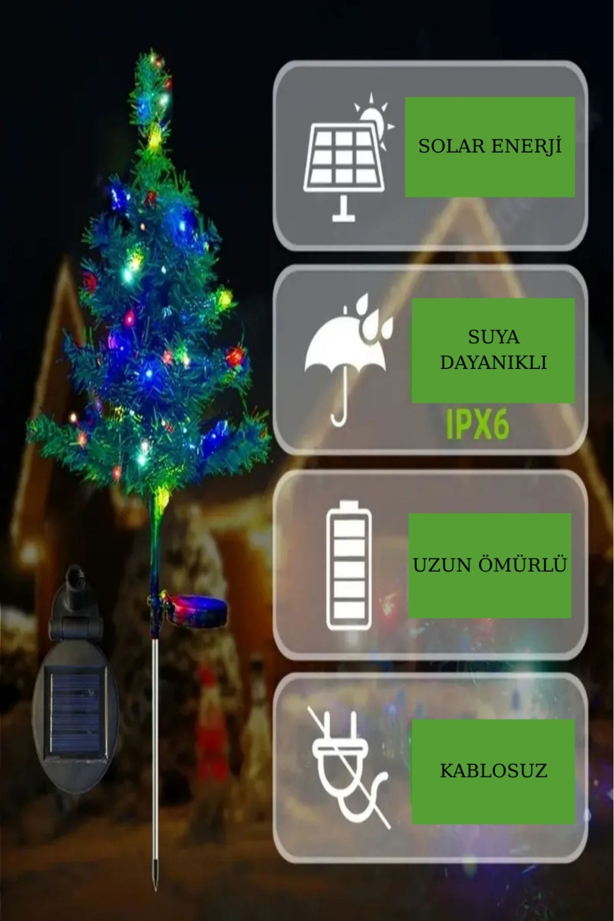 Bahçe aydınlatma Çam ağacı şeklindeki bu LED ışık, dış mekan kullanımına uygundur ve saksı süsleri olarak evinizdede kullanabilirsiniz, Gece Işıklarıyla ortama renk katarken gündüz güzel bir dekor olarak behçenizi ve saksılarınızı süsleyecektir
