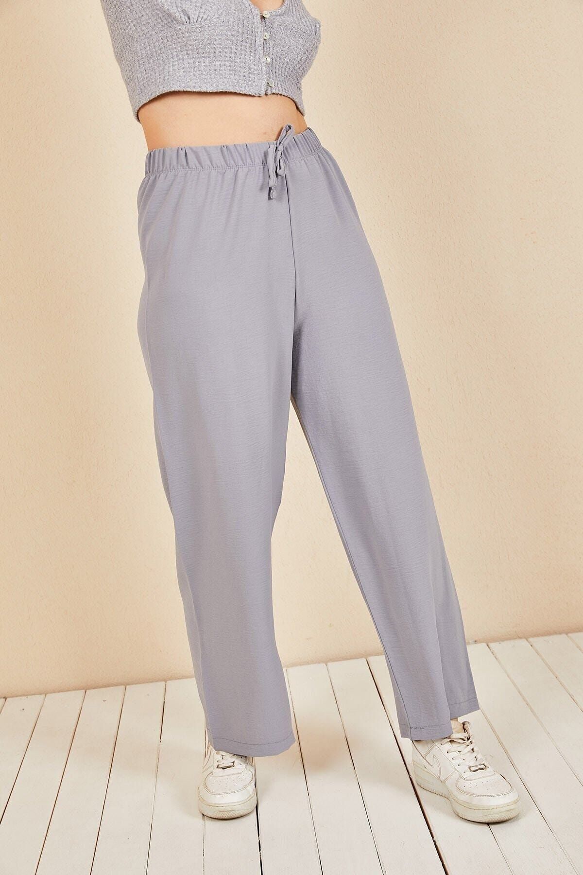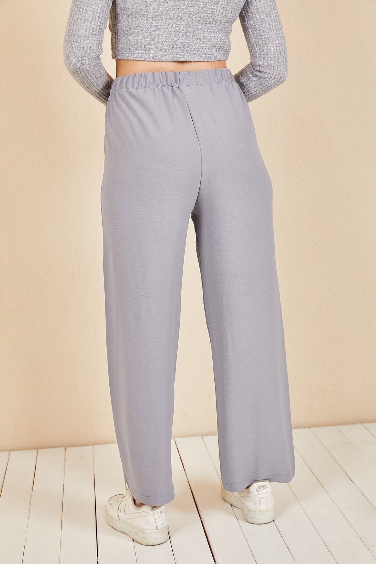 Boru paça kesimi modern ve şık bir görünüm kazandırırken, düz deseniyle kolayca kombinlenebilir