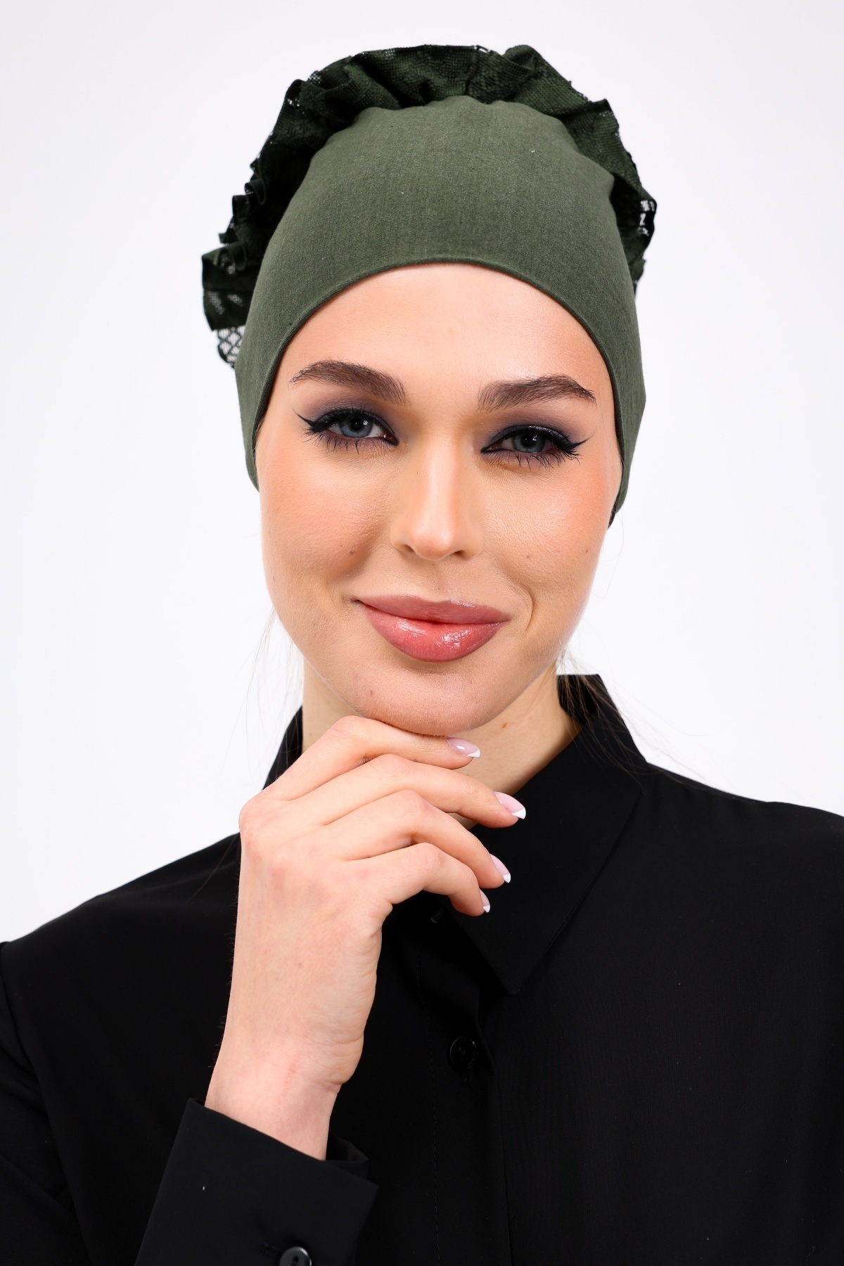 Topuz kısmında bulunan dolgun fırfırlı yapısıyla ideal topuz görüntüsü verir.
