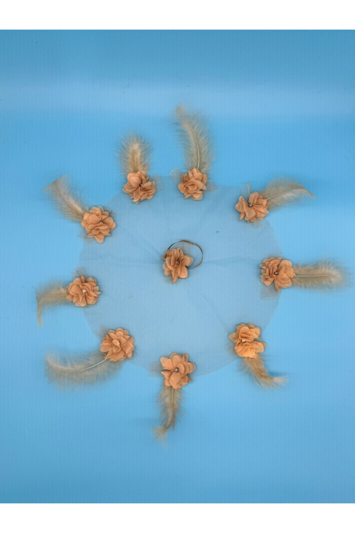 - Gelin ve damat çiftleri için özel olarak tasarlanmış, şıklığı ve zarafeti bir arada sunan tüylü, gül desenli ve incili lüks halay mendili.