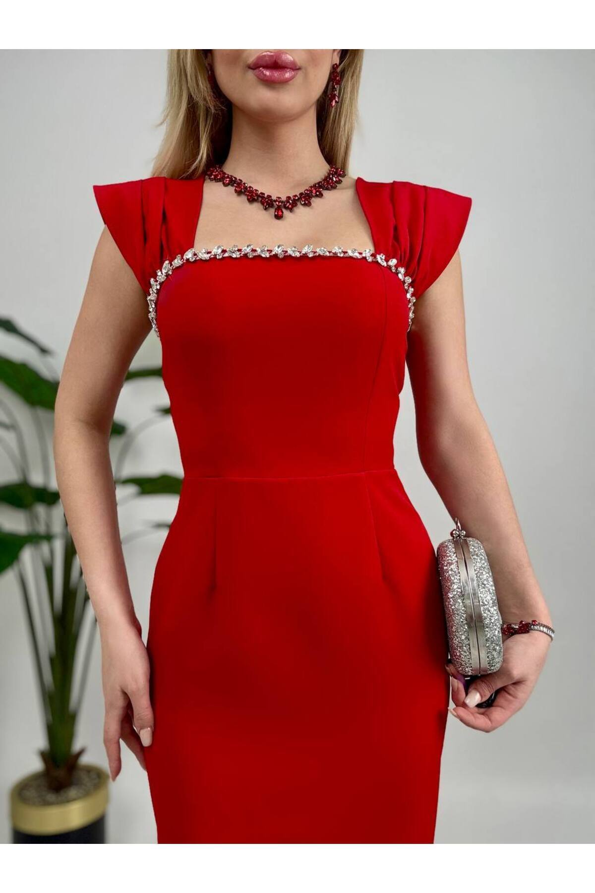 Düğün ve nikahlarda şıklığıyla ön plana çıkan midi boy bebe mavi abiye elbise, her yaştan kadının tarzını tamamlayacak zarafetle tasarlanmıştır.