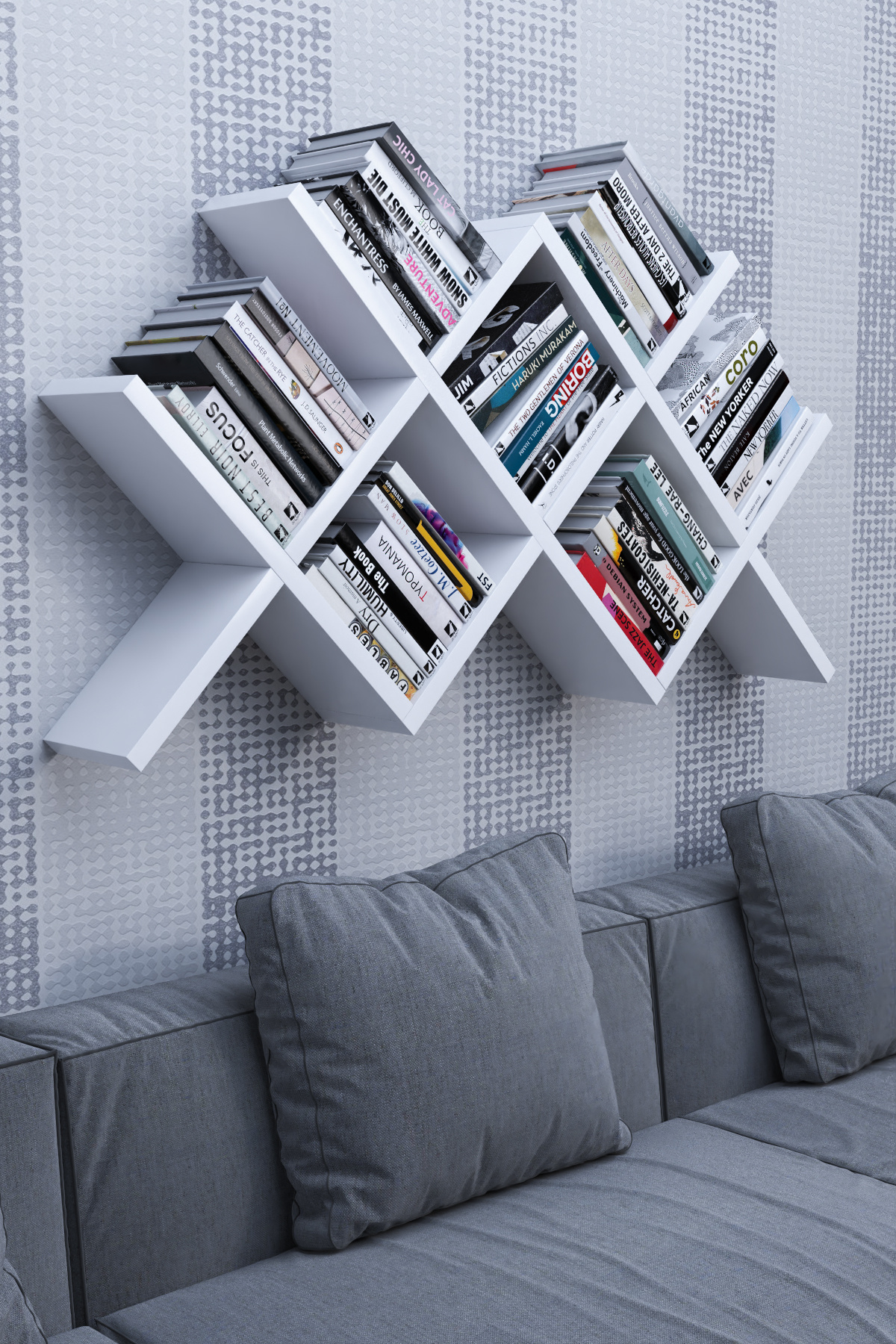 - Modern tasarımıyla çalışma alanınıza şıklık katan duvara monte çapraz kitaplık, ofis veya ev ortamında estetik bir görünüm sağlar.