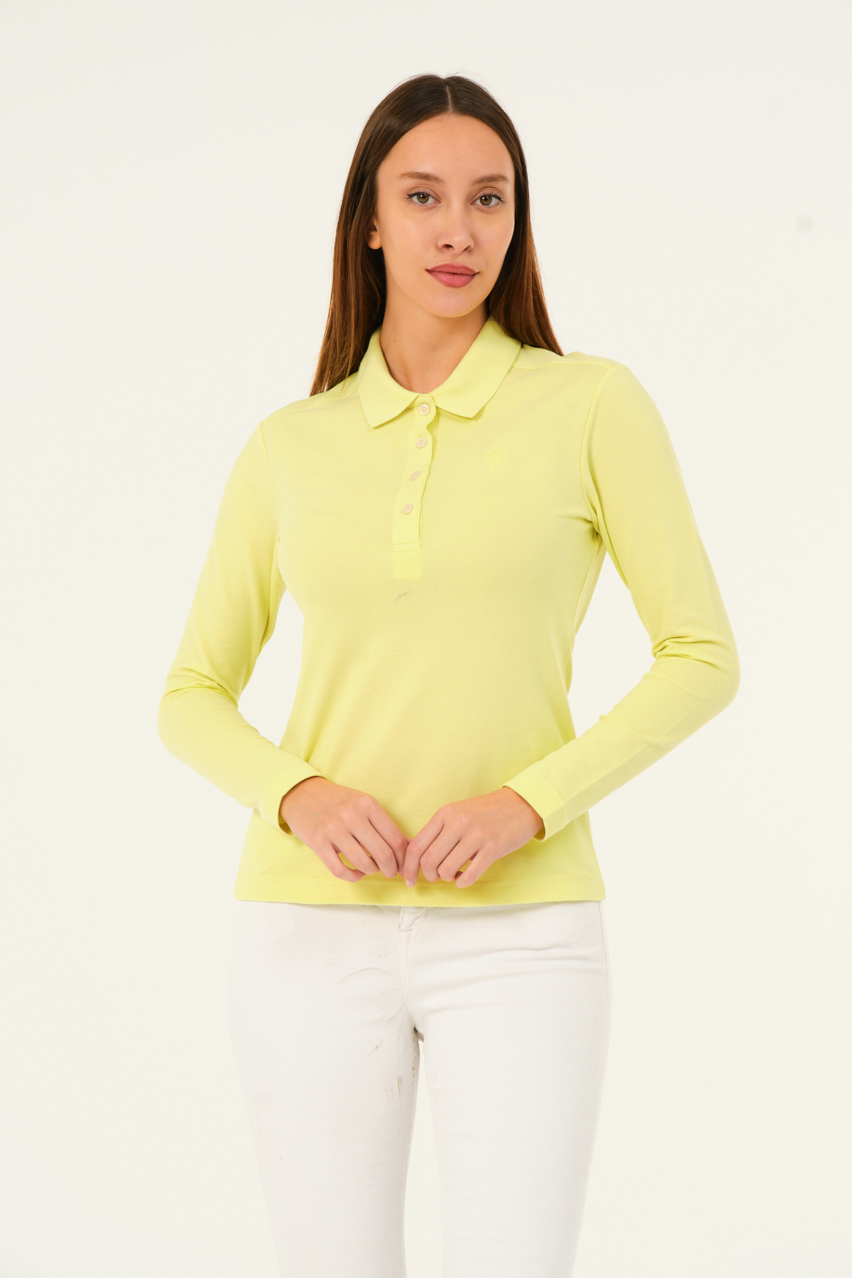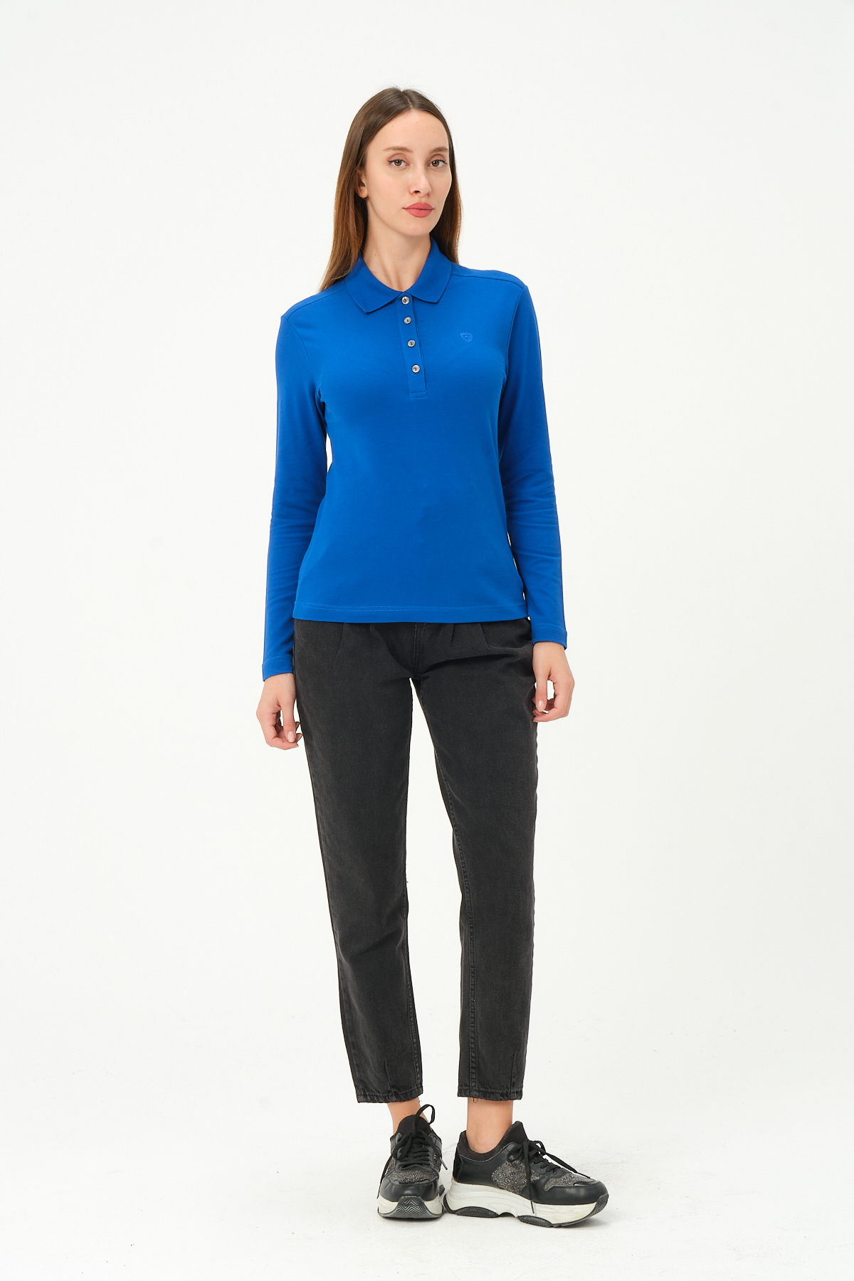 uzun kol tipiyle tamamlanan polo yaka detayına sahiptir.