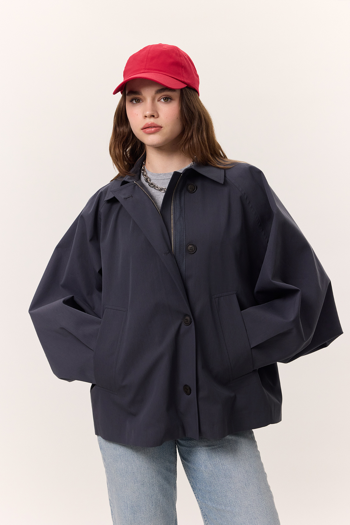 Gömlek yakalı, fermuar ve düğme kapamalı, reglan kollu, grogren detaylı, uzun kollu, astarlı.