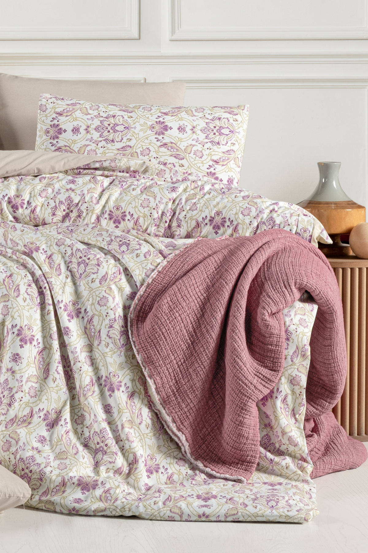 nevresim, lastikli çarşaf ve yastık kılıfını içerir, böylece ihtiyacınız olan her şey tek pakette bulunur.