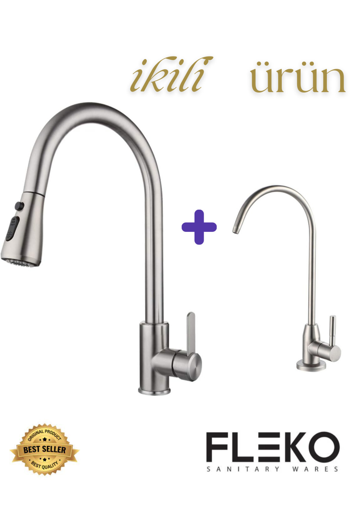 Fleko Inox Spiralli 2 Fonksiyonlu 5 Yıl Garantili Paslanmaz Çelik Malzeme Mutfak Eviye Bataryası