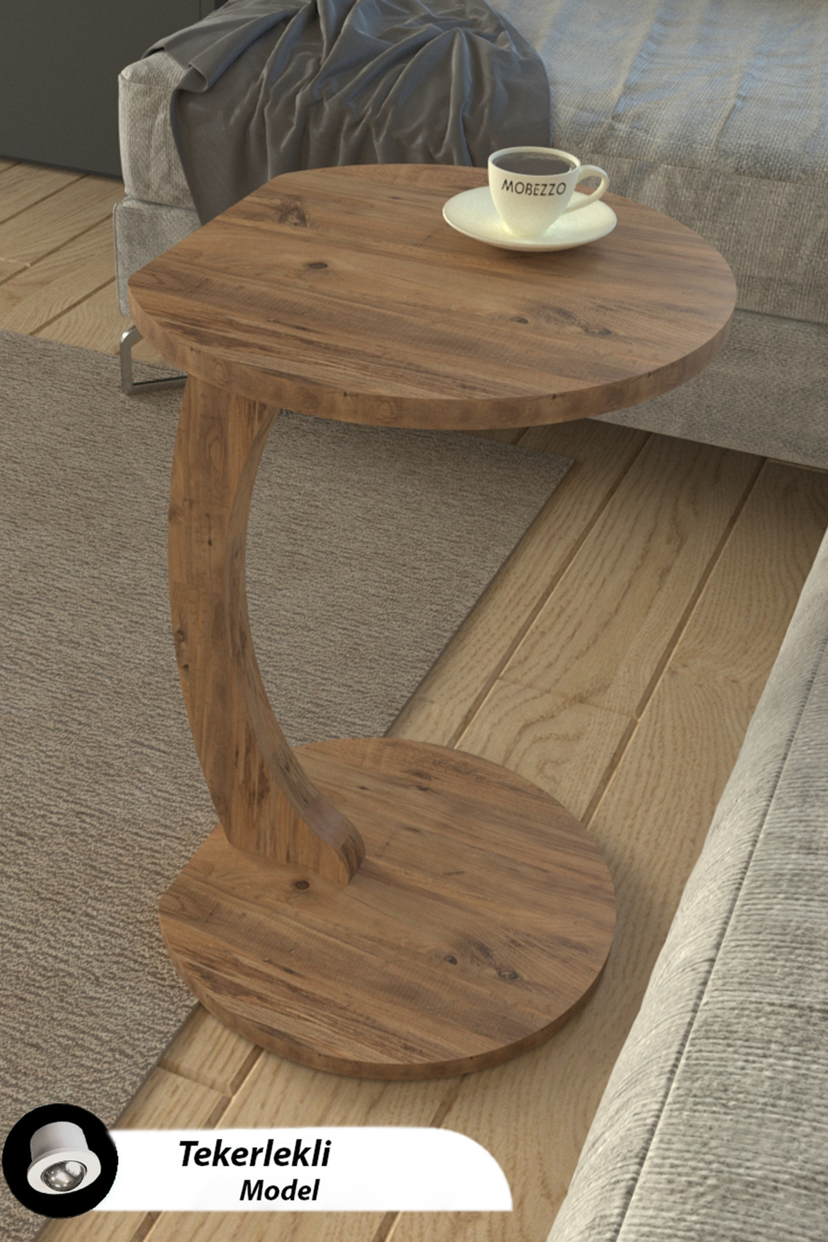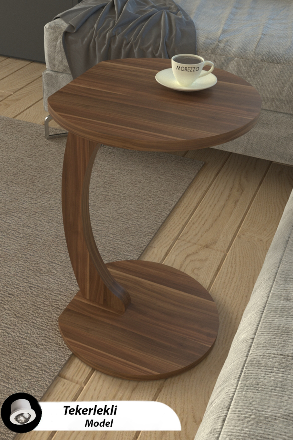 Tekerlekli C Yan Sehpa | Koltuk ve Yatak Yanı Laptop Masası | Taşınabilir Pratik Servis Sehpa Modeli