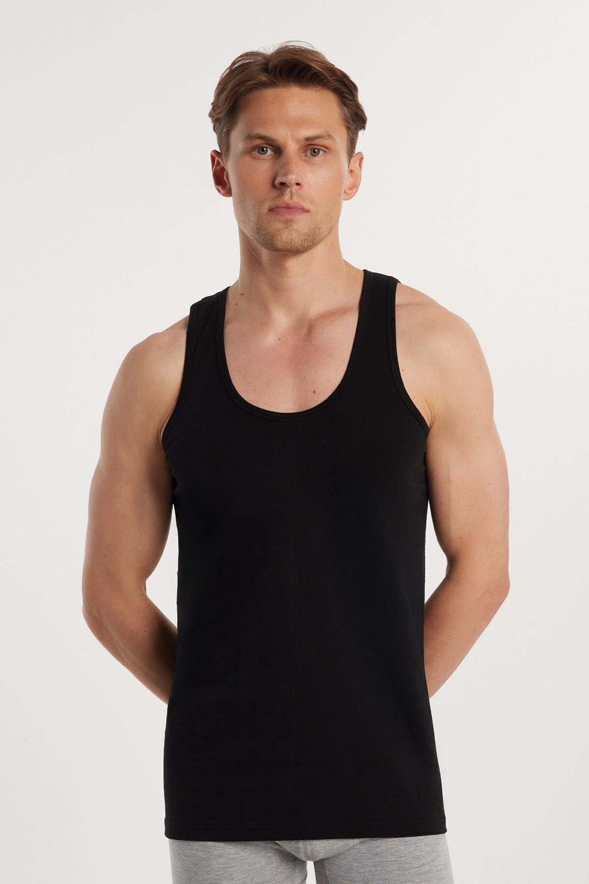 3 Adet Compact Penye Siyah Erkek Atlet %100 Pamuk Standart Fit Normal Kesim 3'lü Paket