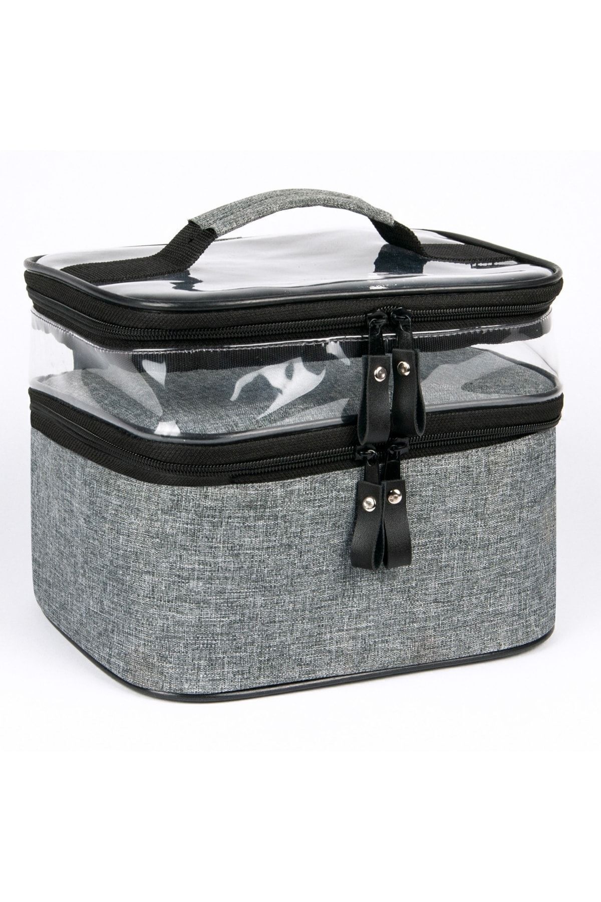Ürün Detayları: Ölçüler: 18x24 cm Malzeme: Yüksek kaliteli dayanıklı malzeme Tasarım: Şeffaf gri makyaj çantası, metalik fermuar detayı.