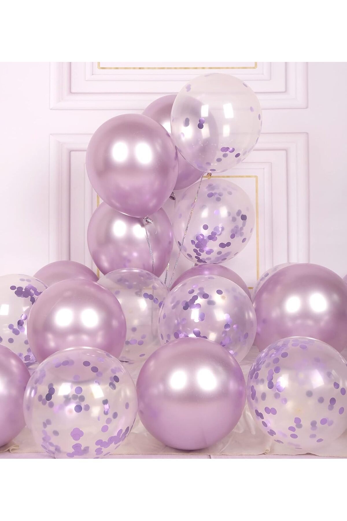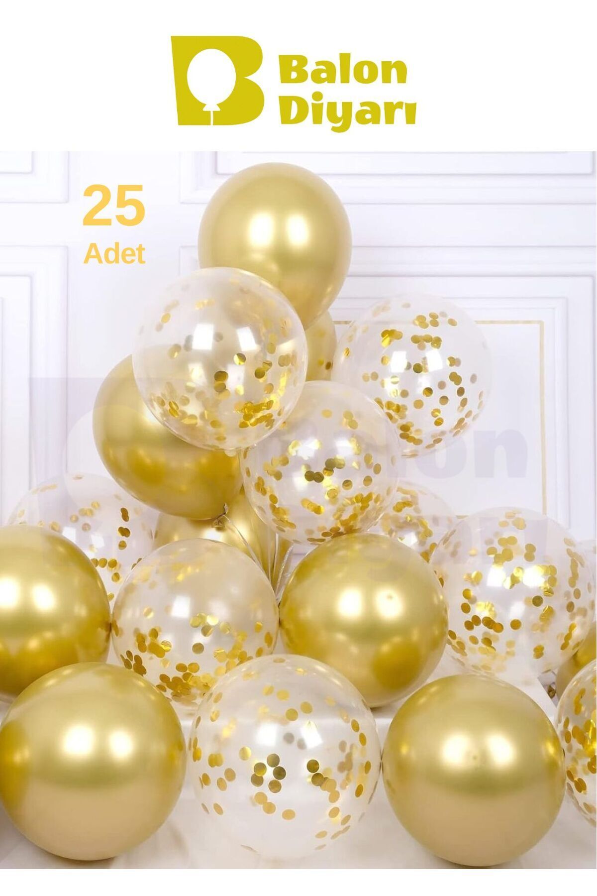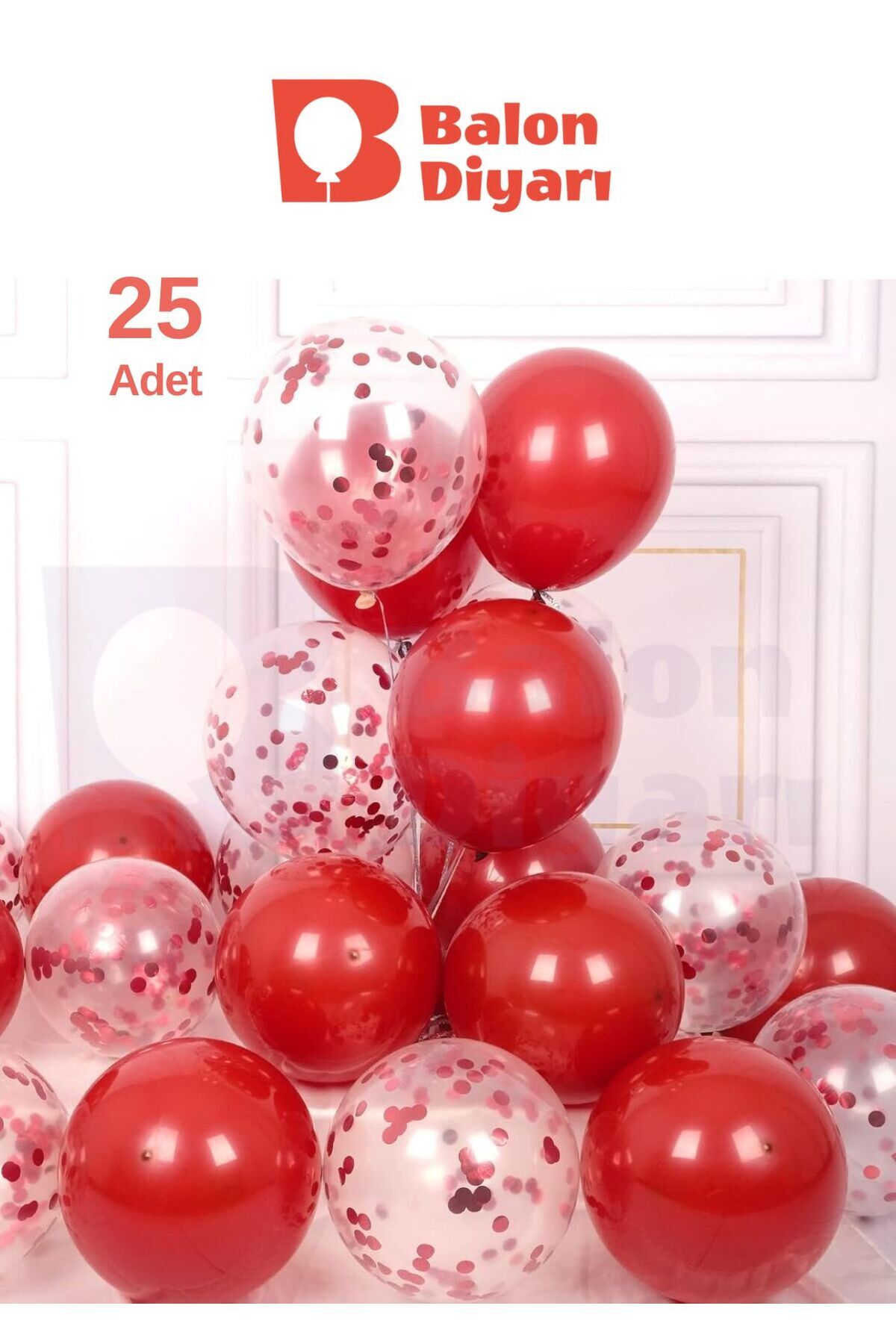 25 Adet Kırmızı, Şeffaf Konfetili Lateks Helyum Balon Seti